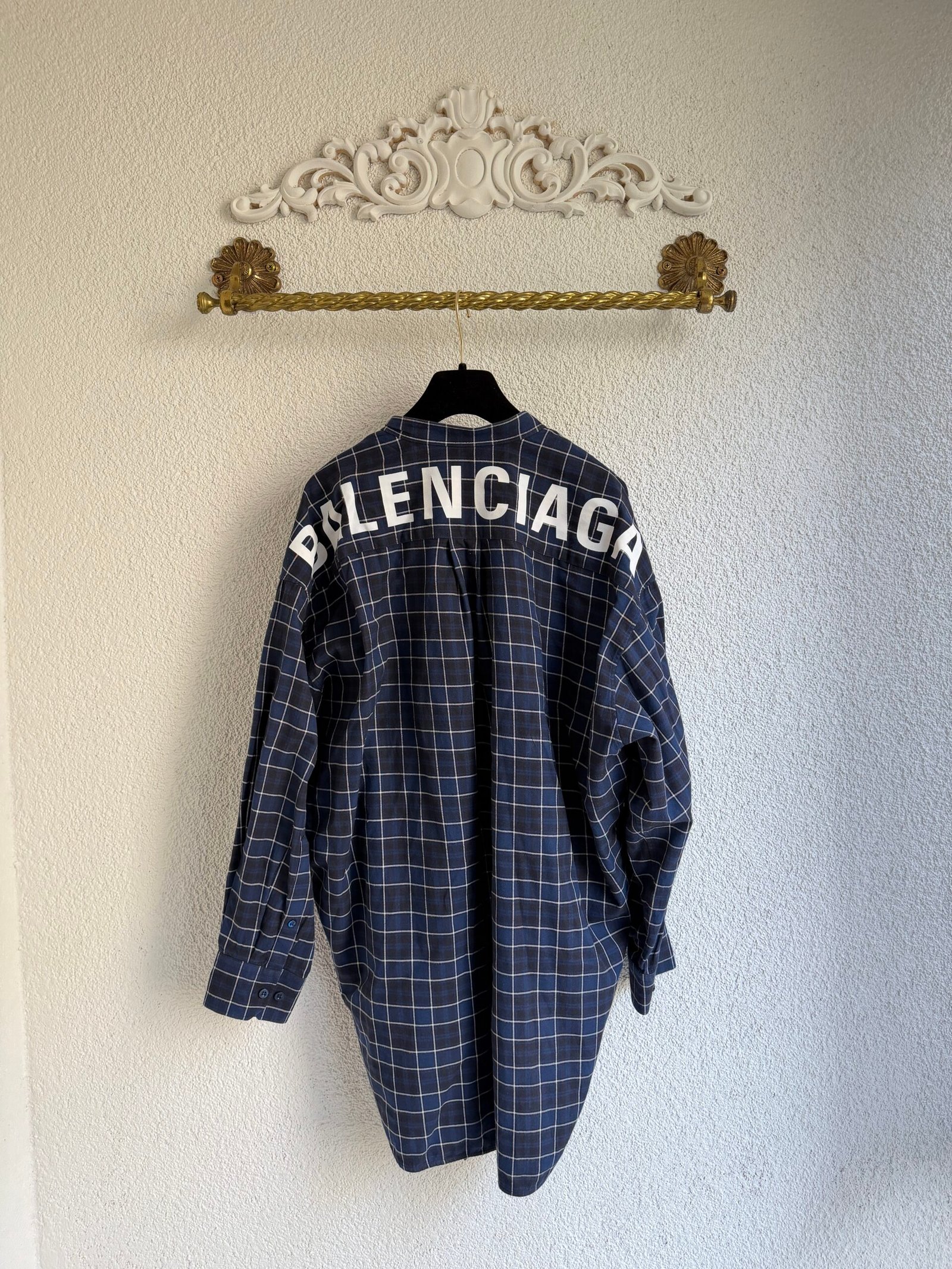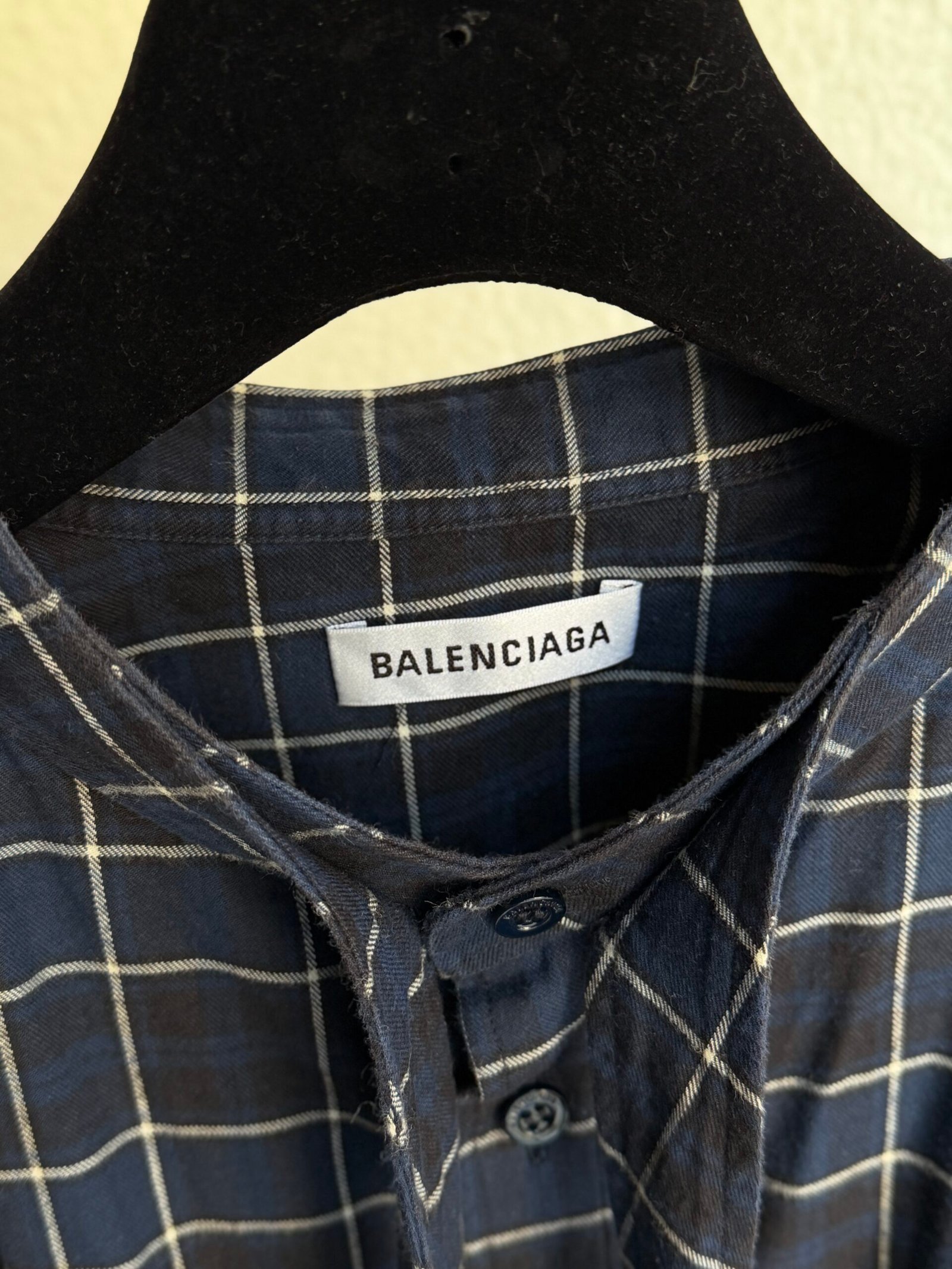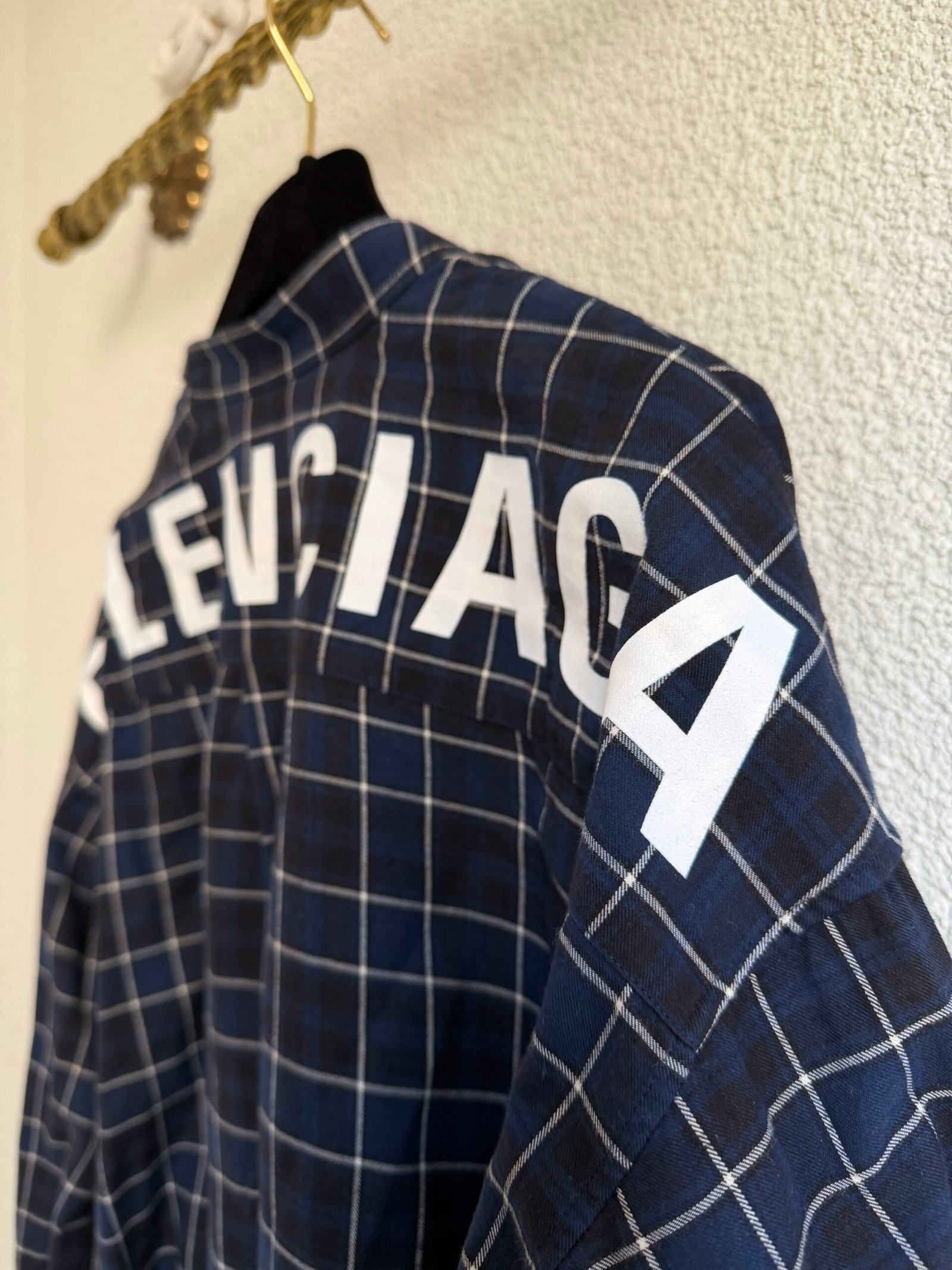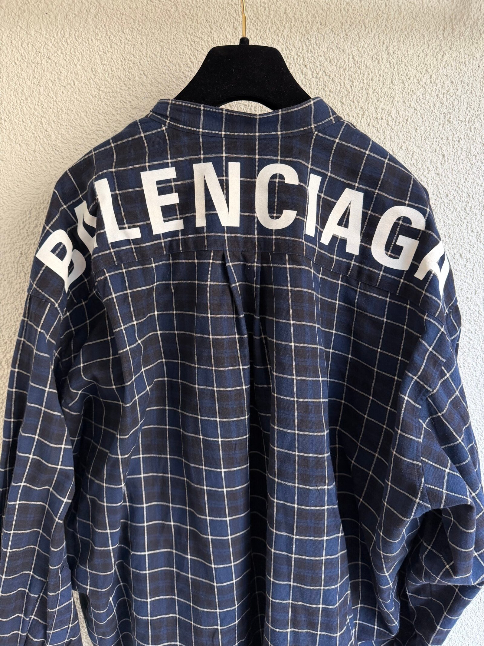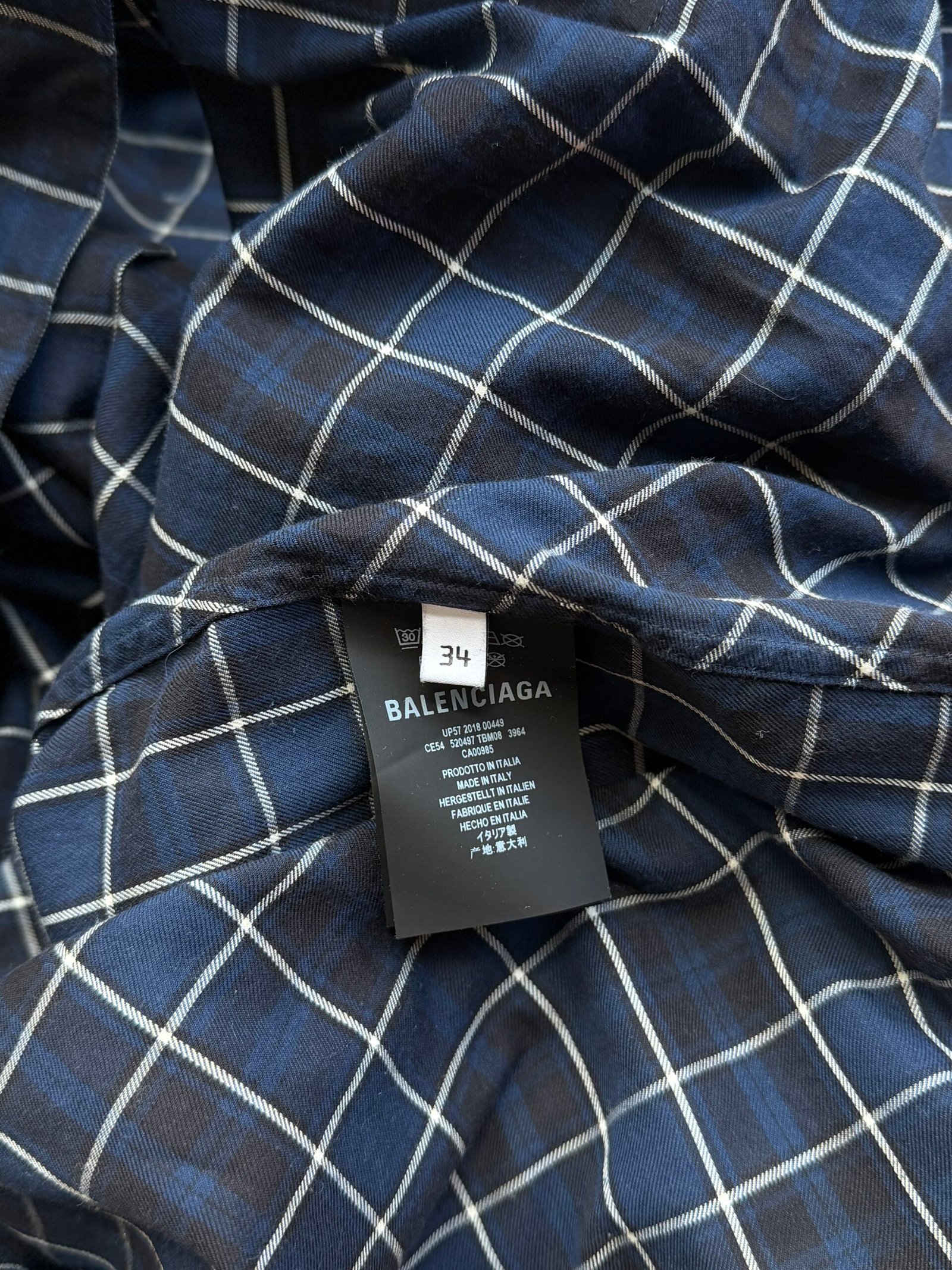 Balenciaga check oversized shirt, size IT 34, chest width 78 cm, length 63 cm, sleeve length 55 cm. 100% Cotton.