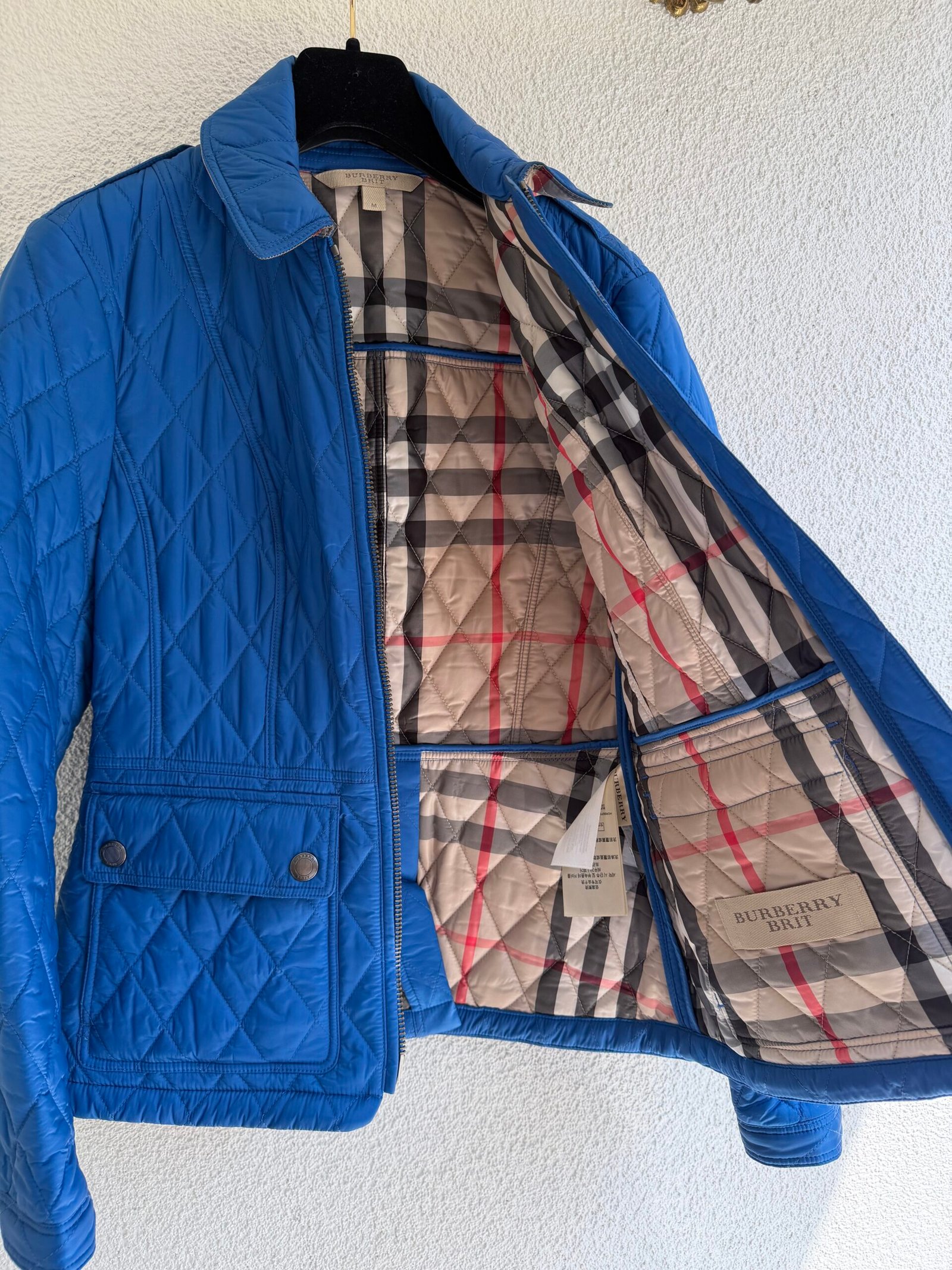 Burberry Brit Quilted Blue Puffer Jacket, Size M, Material 100% Polyamide, Chest width 50 cm, length 53 cm, sleeve length 60 cm