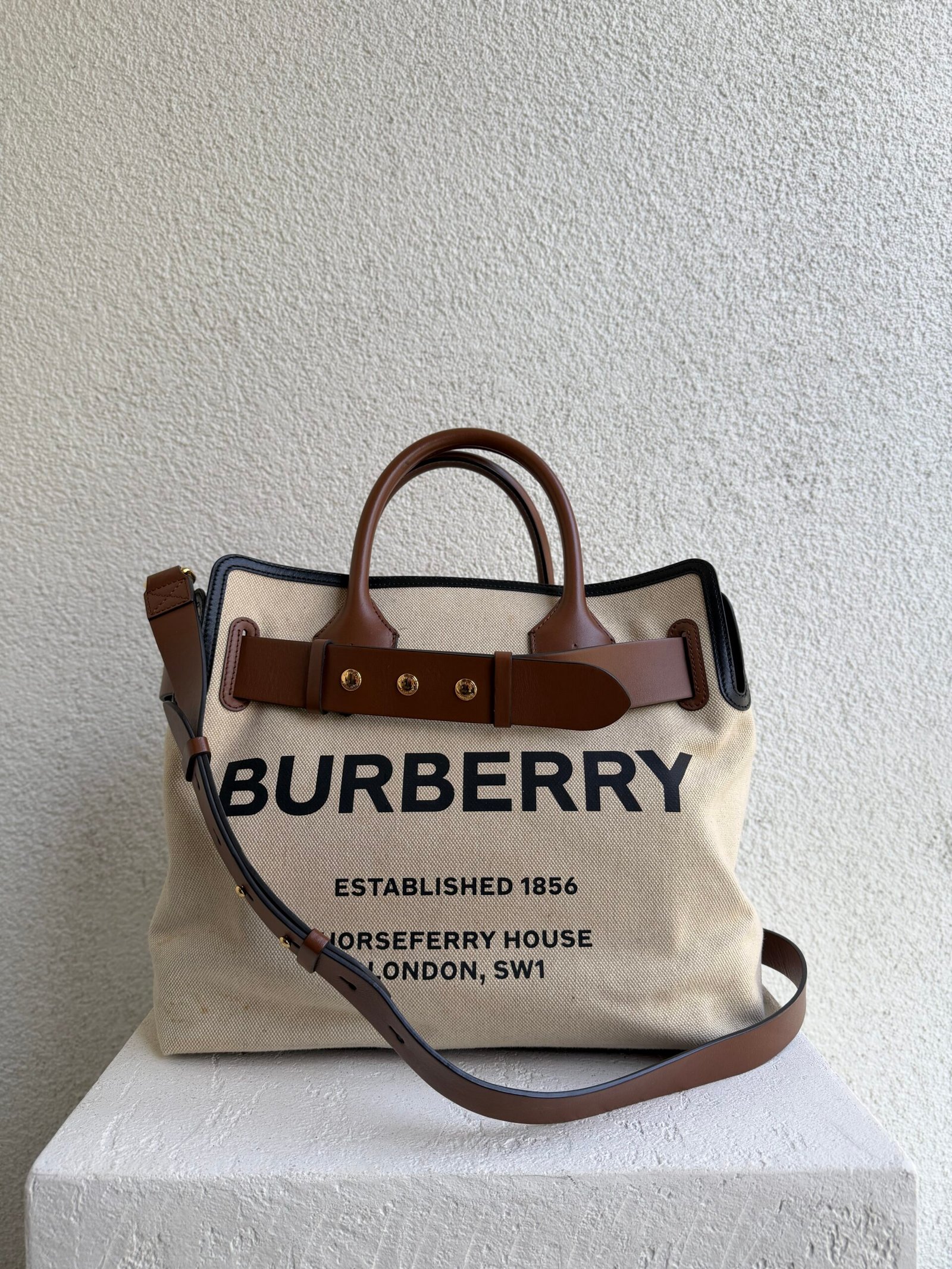 Authenticated pre-owned Burberry canvas bag in neutrals. In very good condition. Verified by SingleFlap experts.
