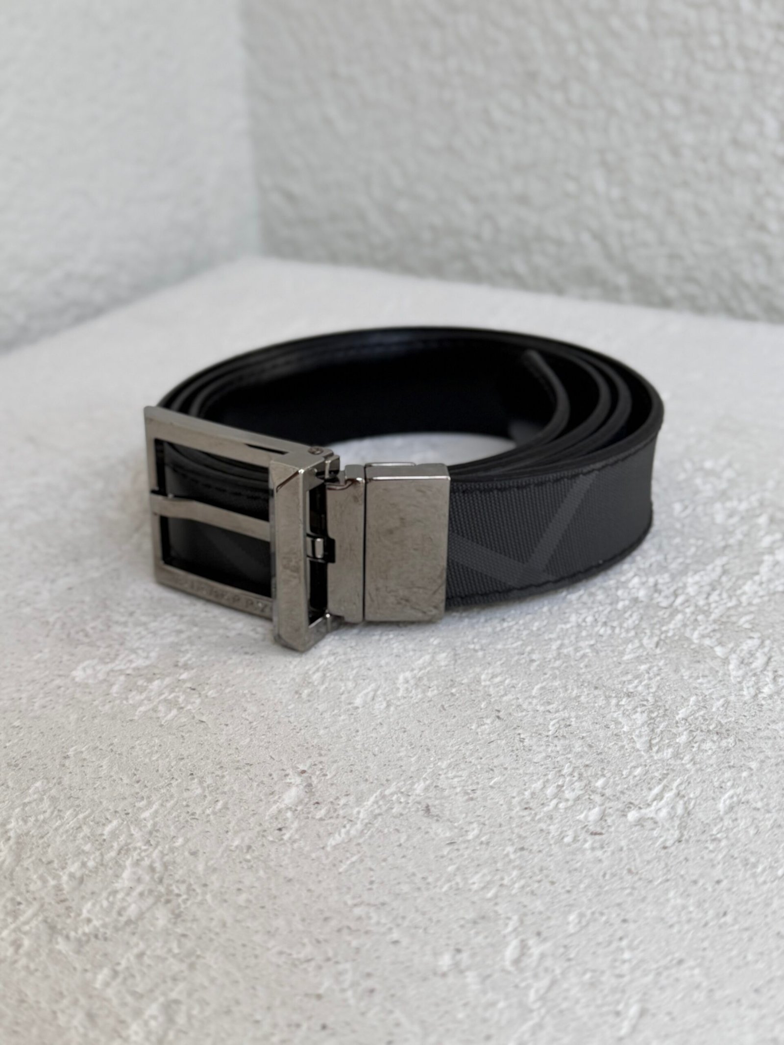 Burberry Nova Check Pattern Leather Belt, Size 100, Antrachite color, No box and dustbag