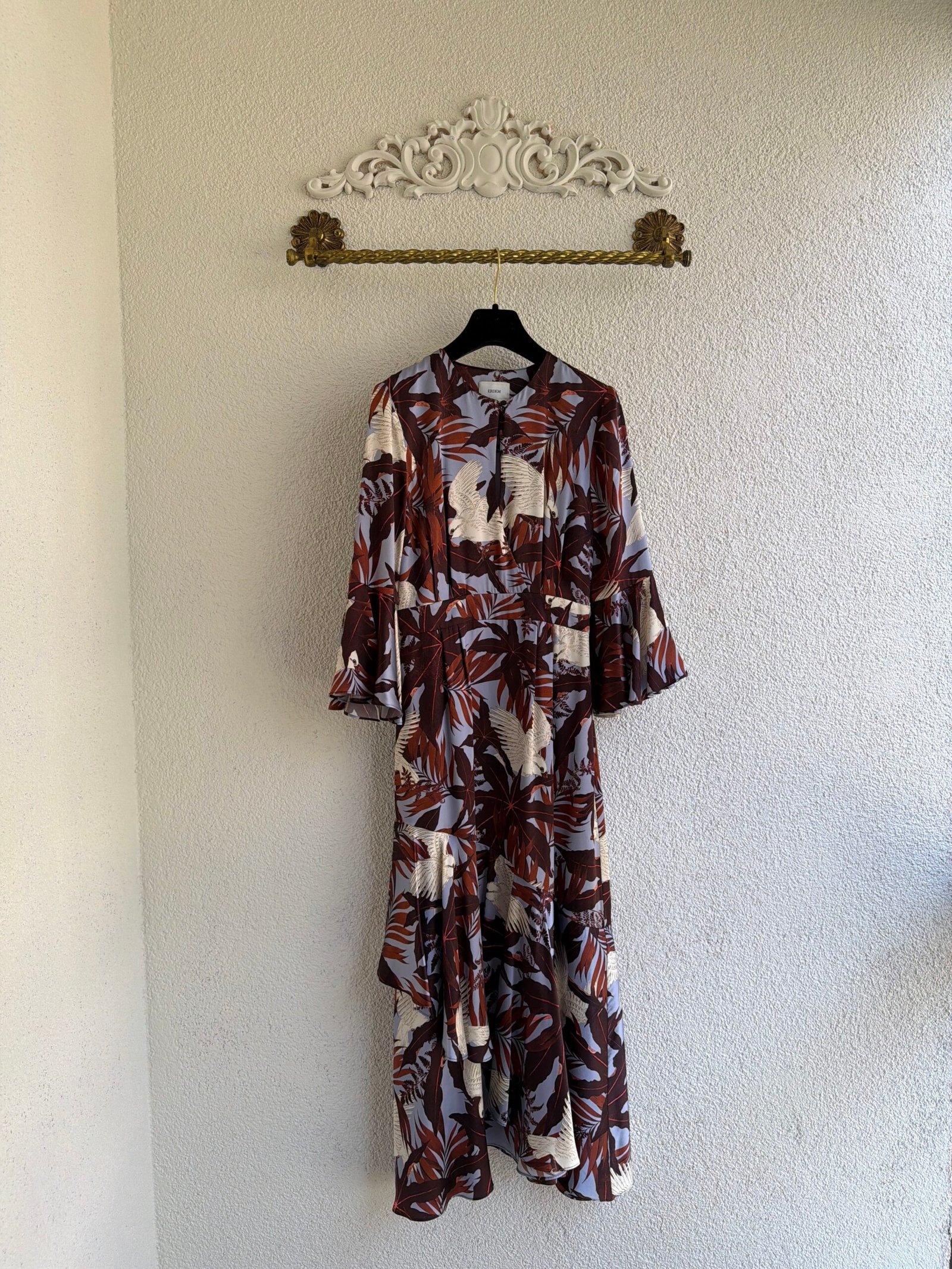 Erdem Floral Pattern Silk Maxi Dress, Size IT 42, Material 100% Silk, Chest width 50 cm, length 125 cm, sleeve length 47 cm