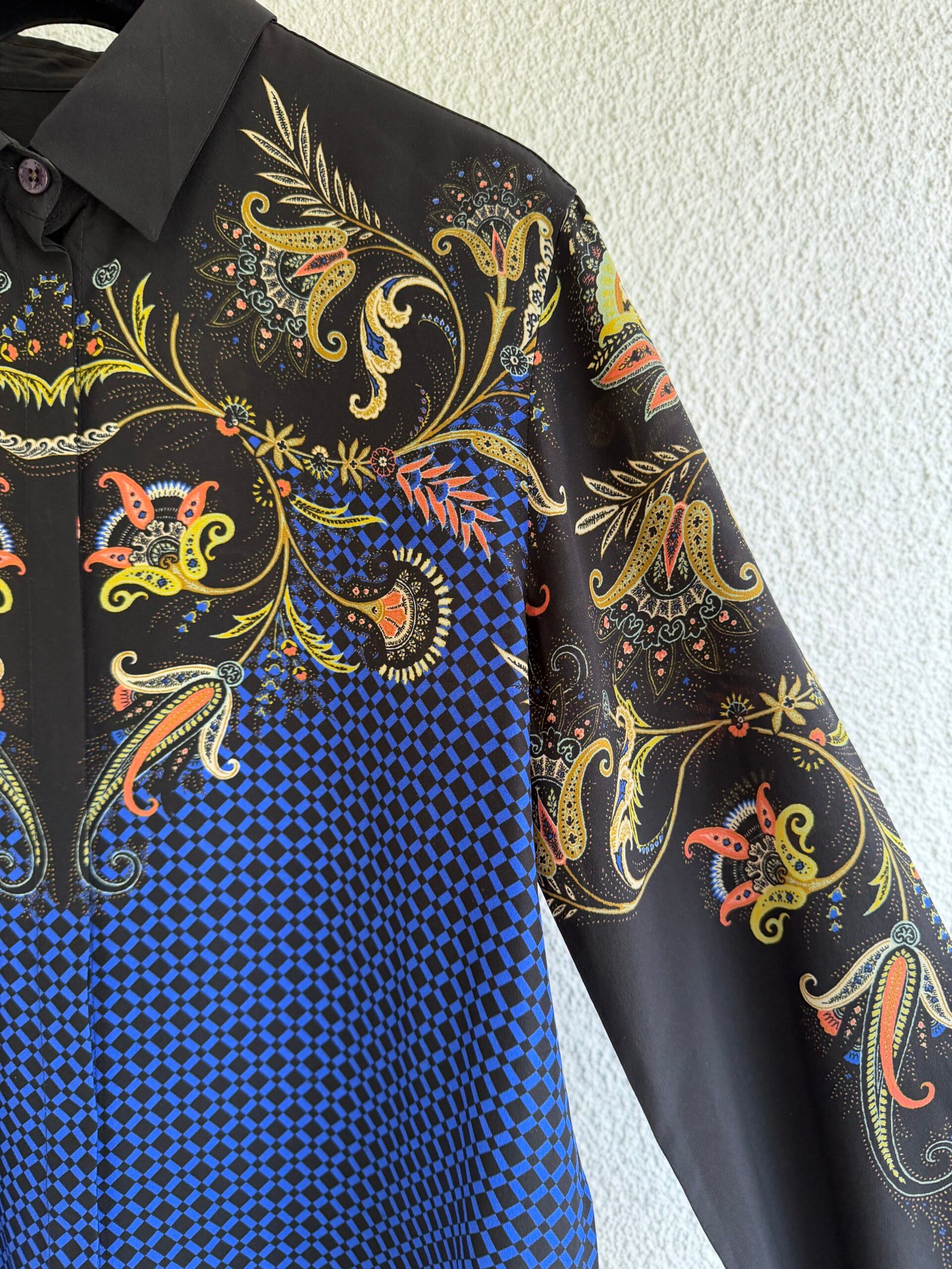 Etro Multicolor Silk Shirt, Size IT 42, Material 100% Silk , Chest width 51 cm, length 66 cm, sleeve length 58 cm