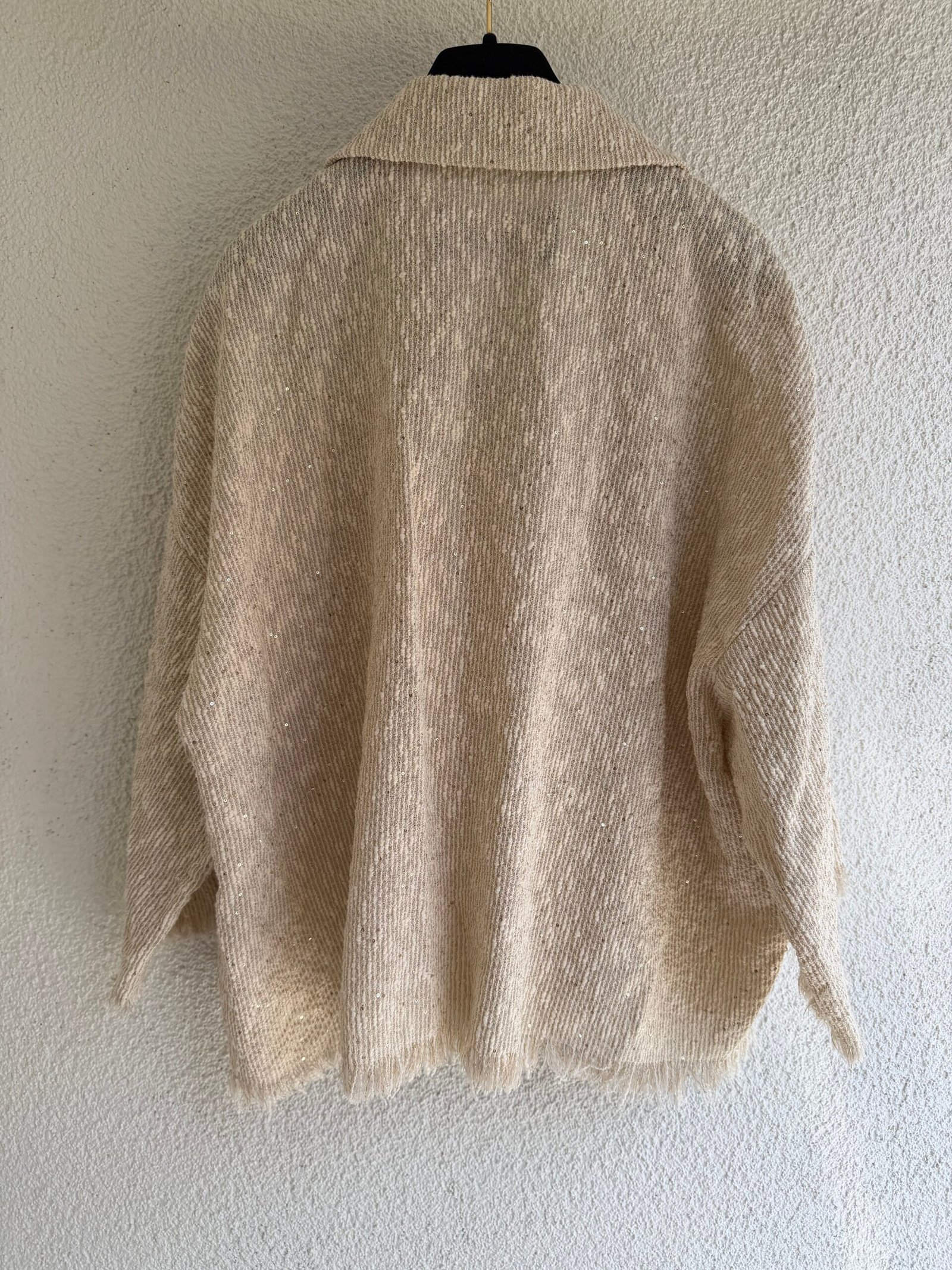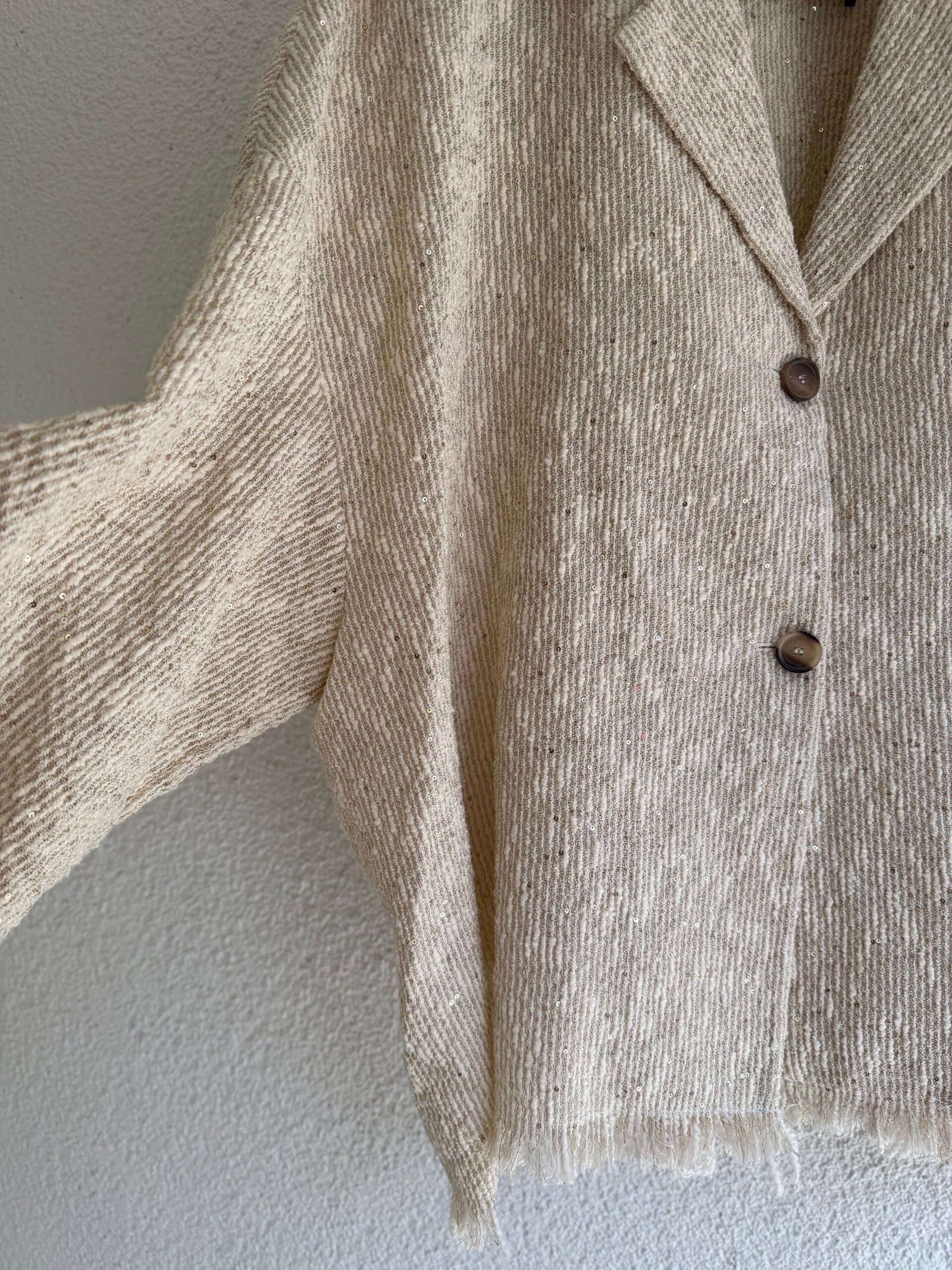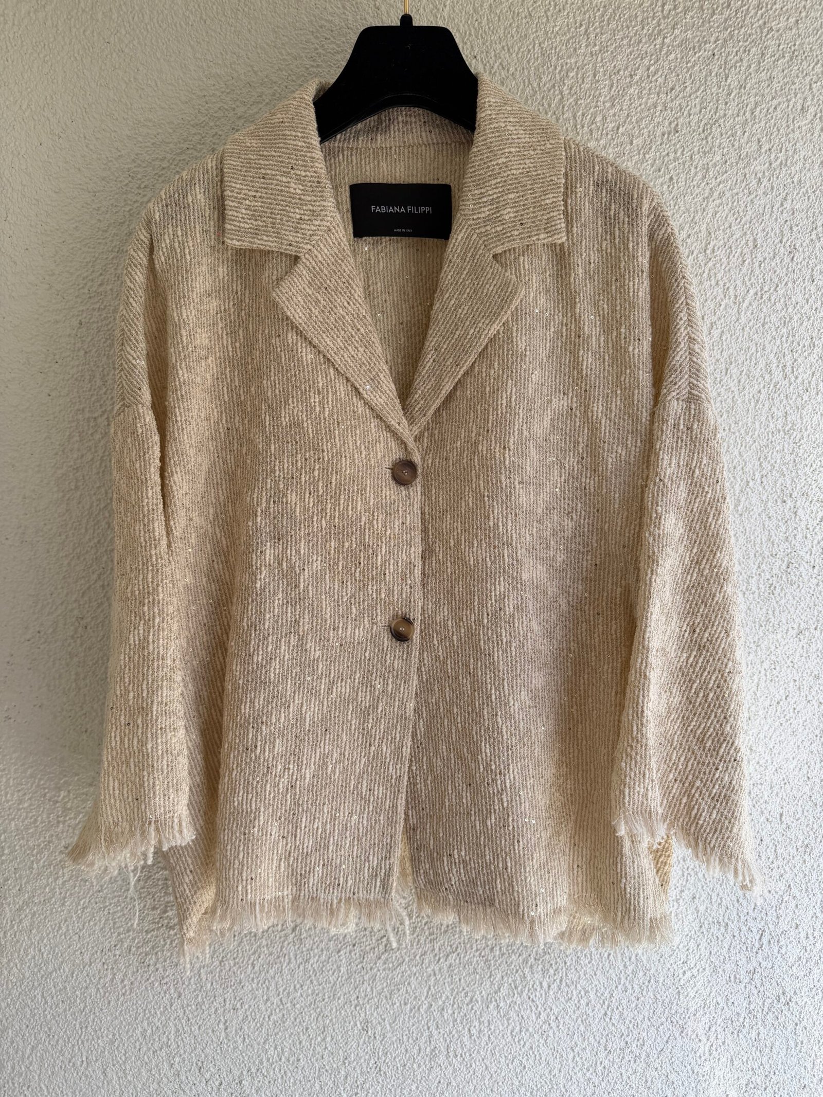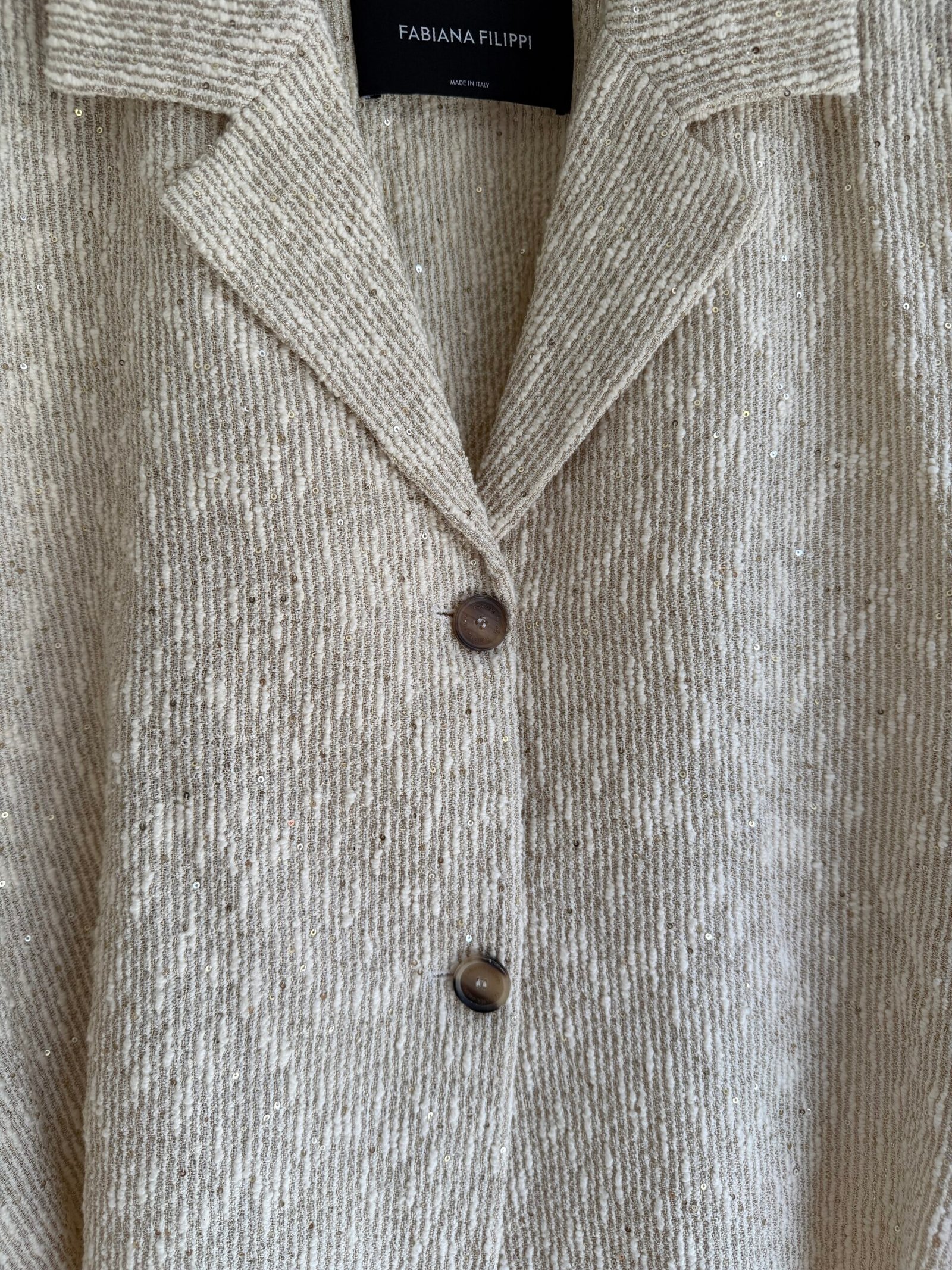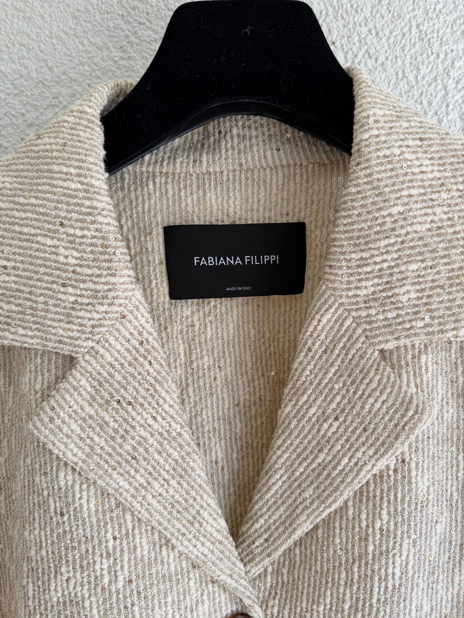 Fabiana Filippi Sequined Wool Jacket, Size XS, Material 59% Cotton 38% Polyester, Chest width 66 cm, length 58 cm, sleeve length 30 cm