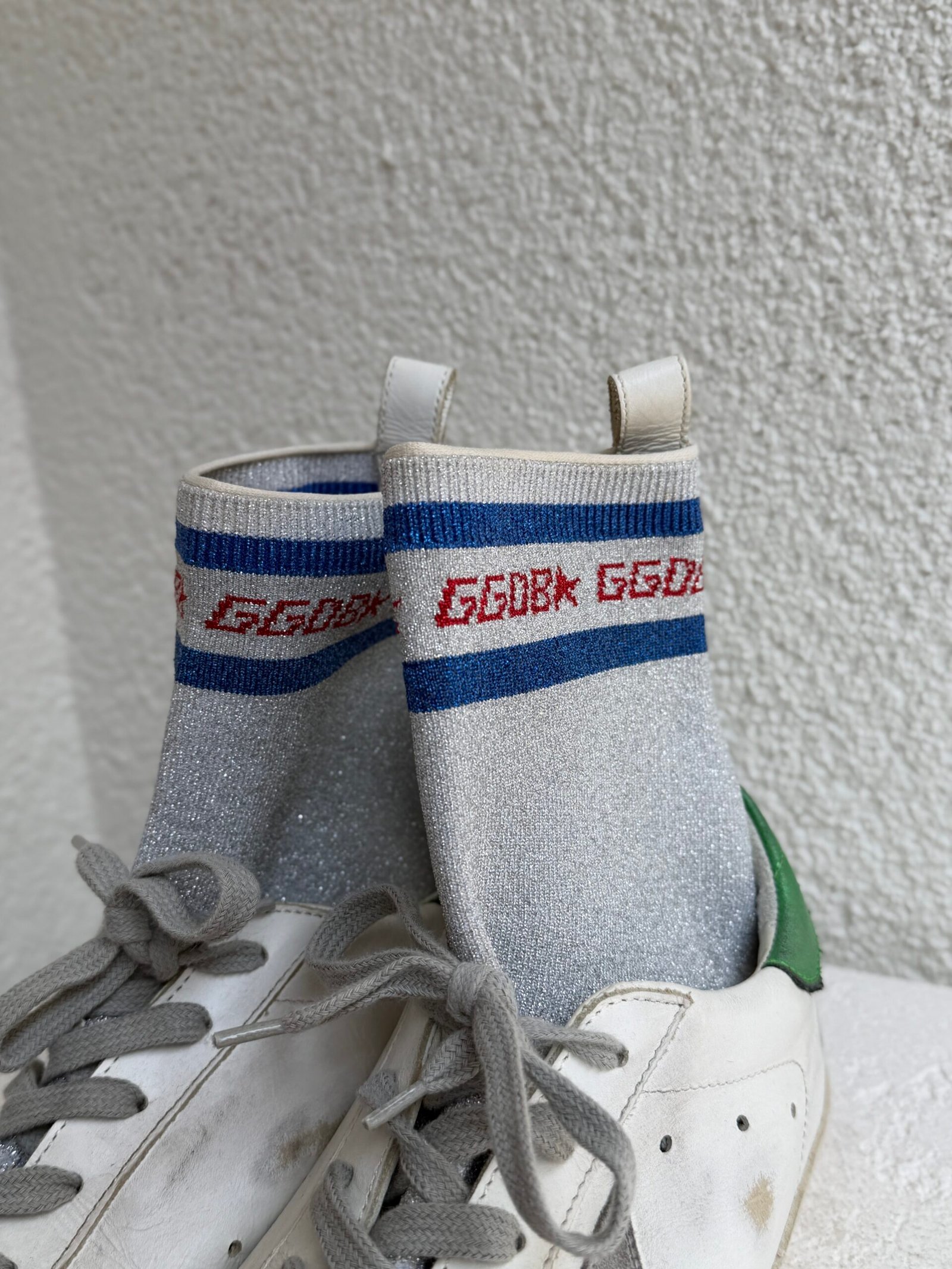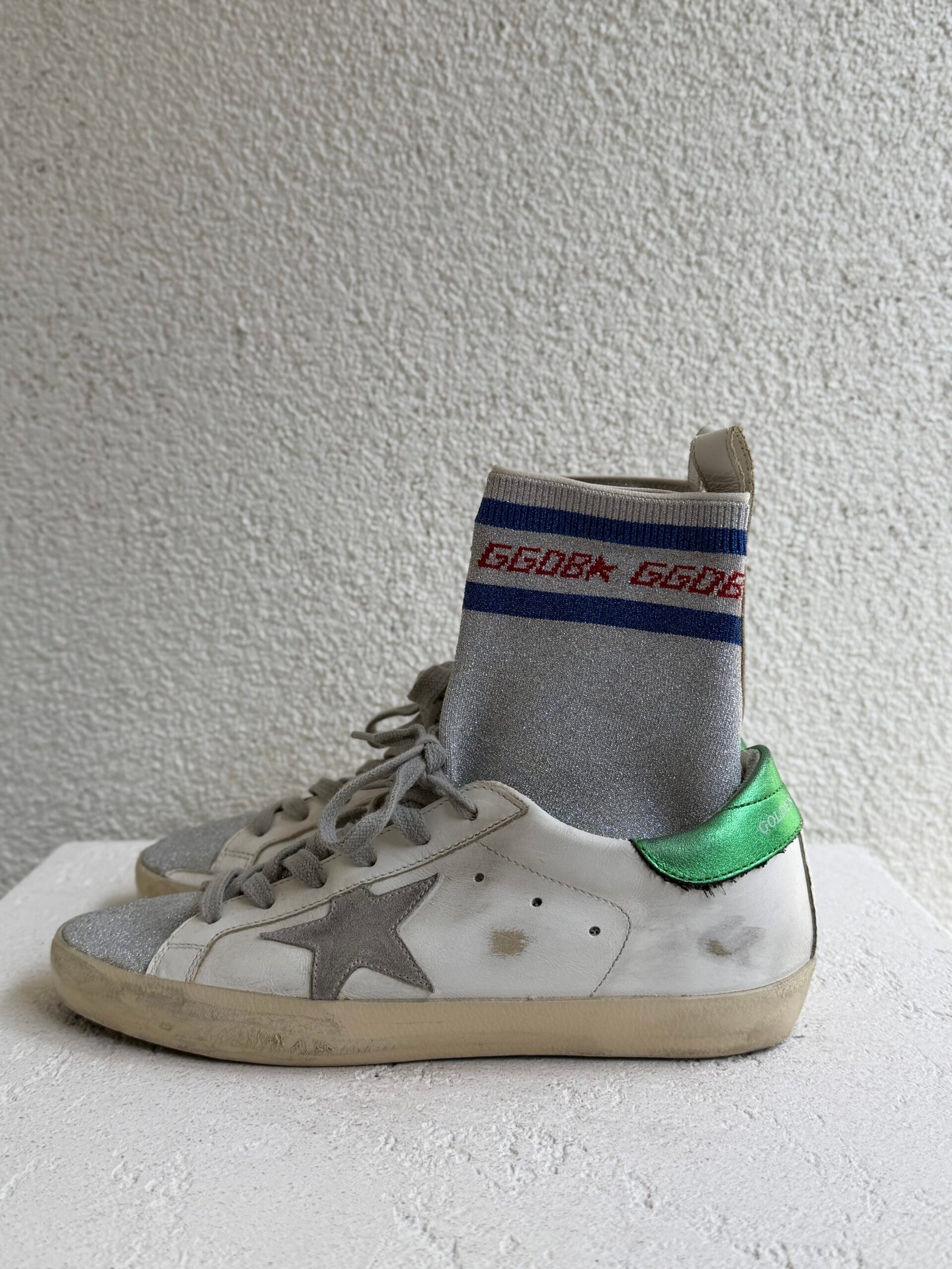Golden Goose Leather Glitter Accents Sock Sneaker