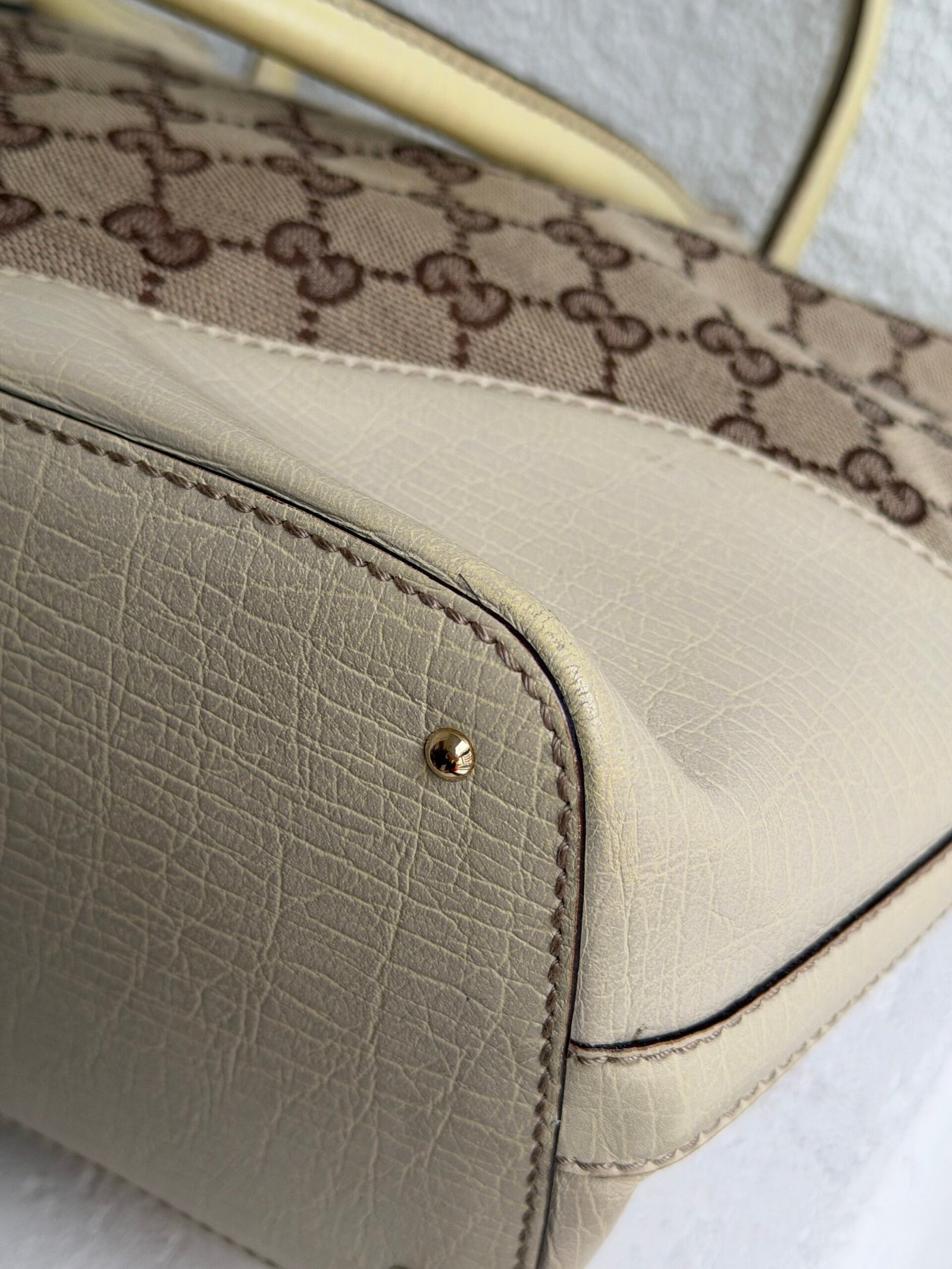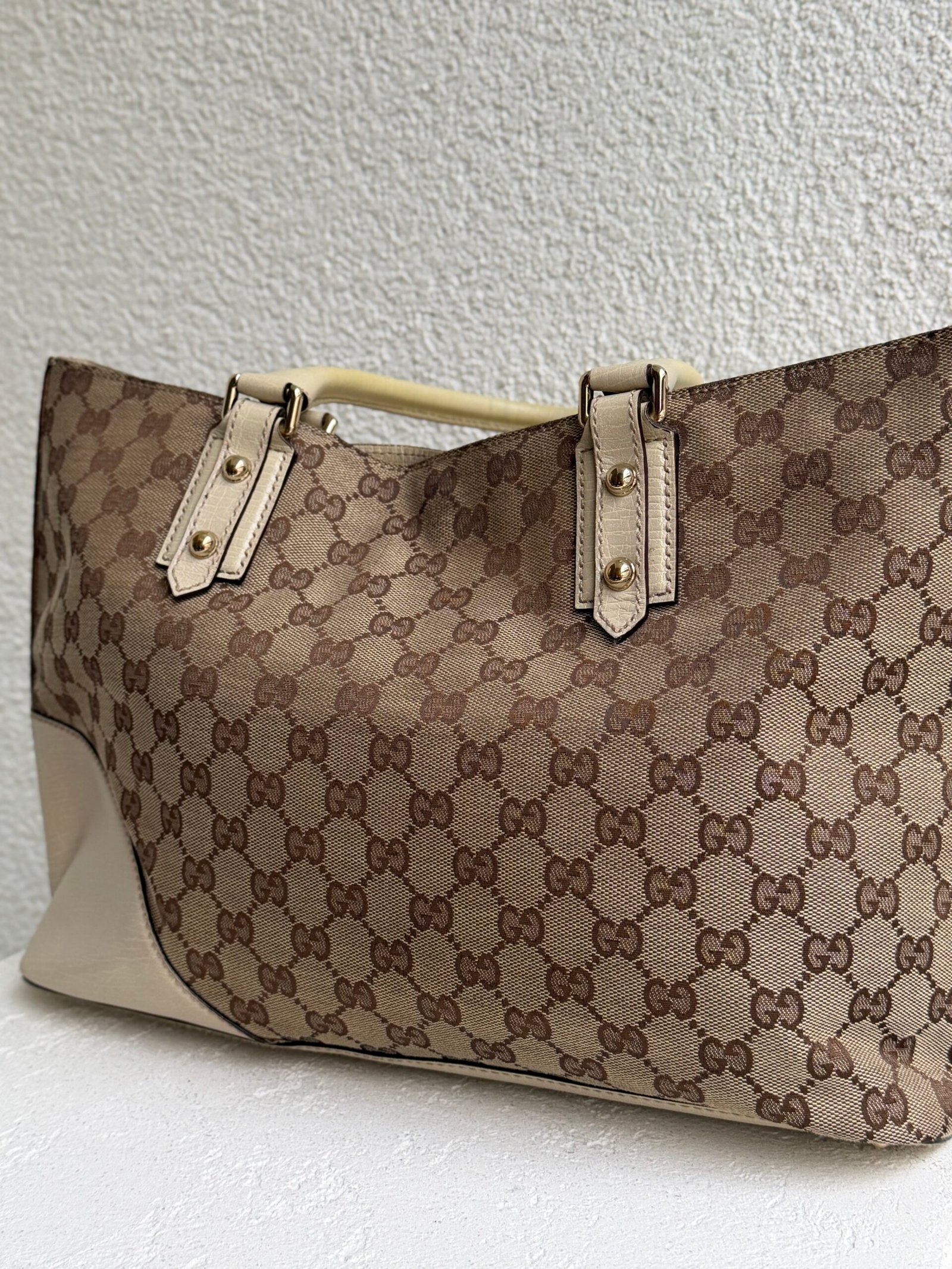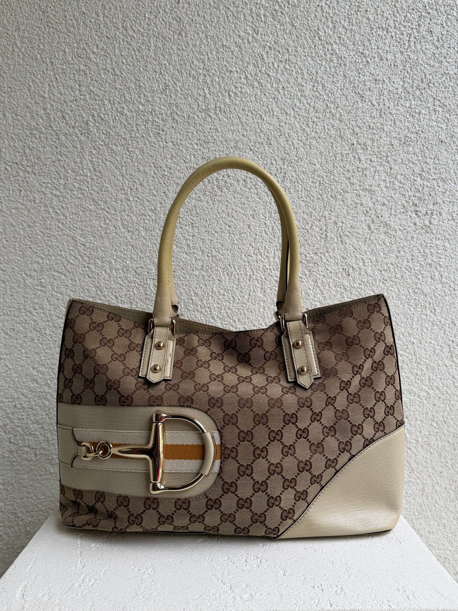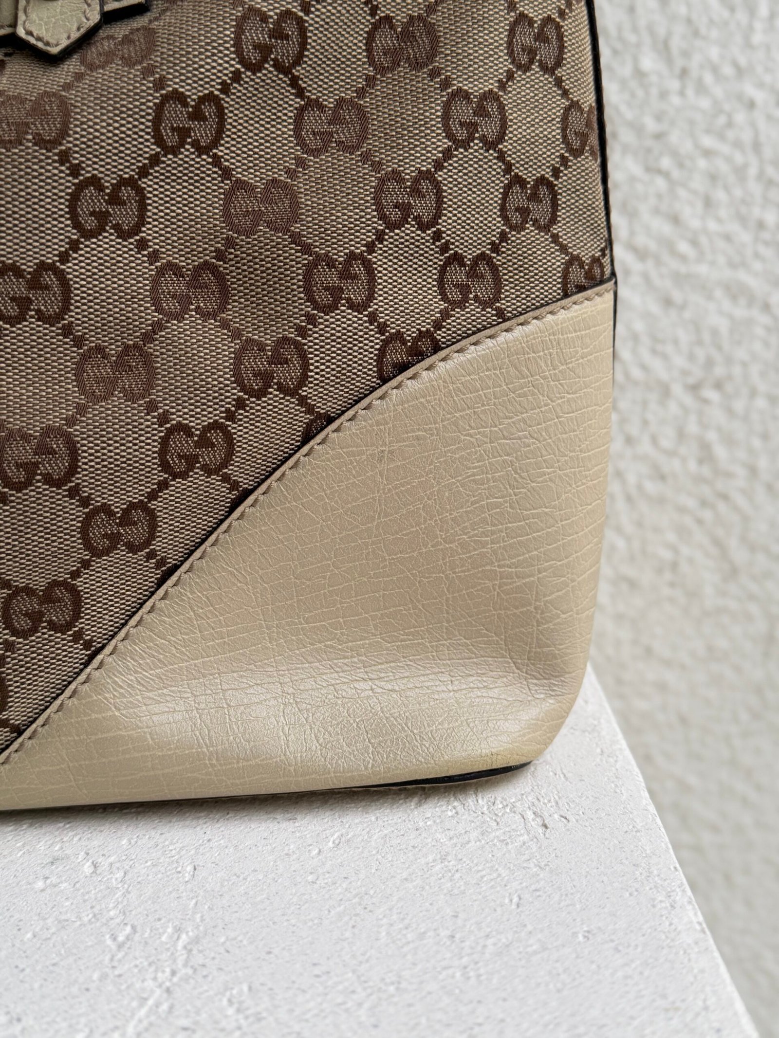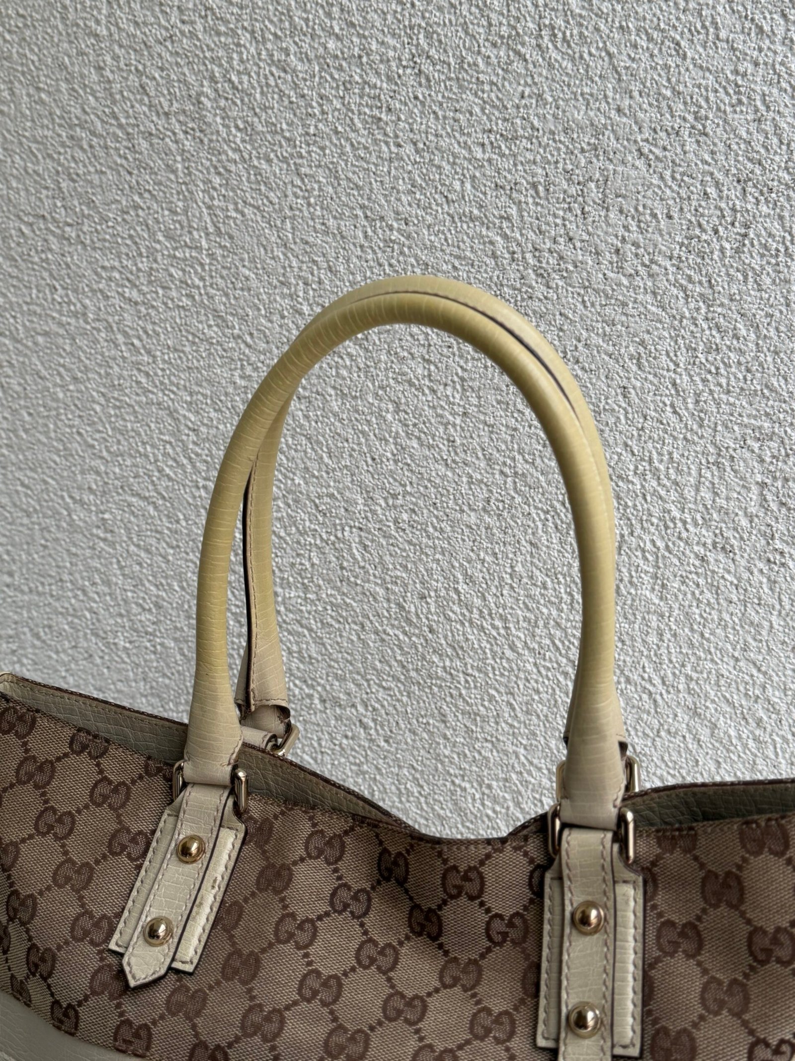 Dimensions: L 38 x H 24 cm, Canvas and leather , Beige color