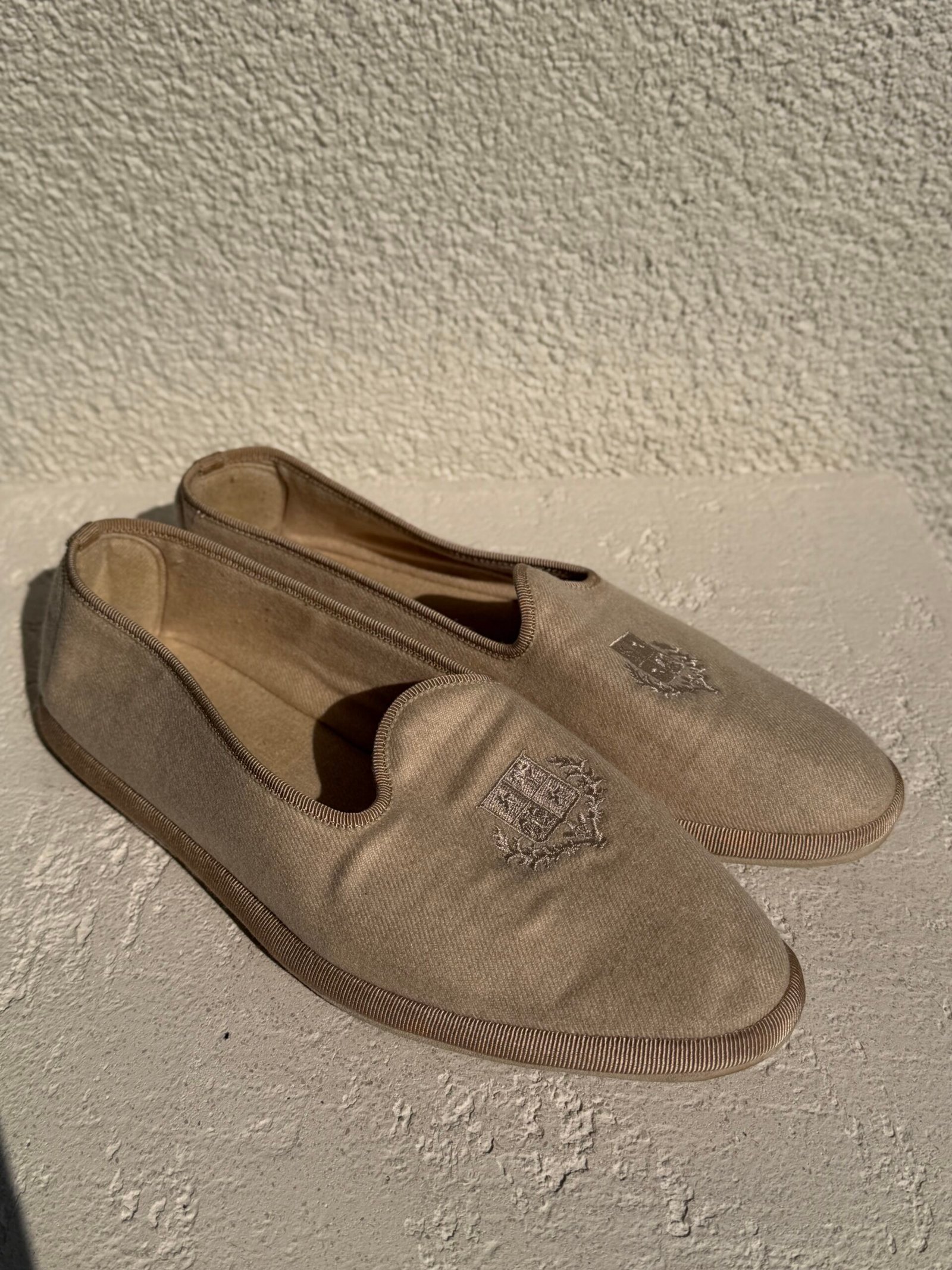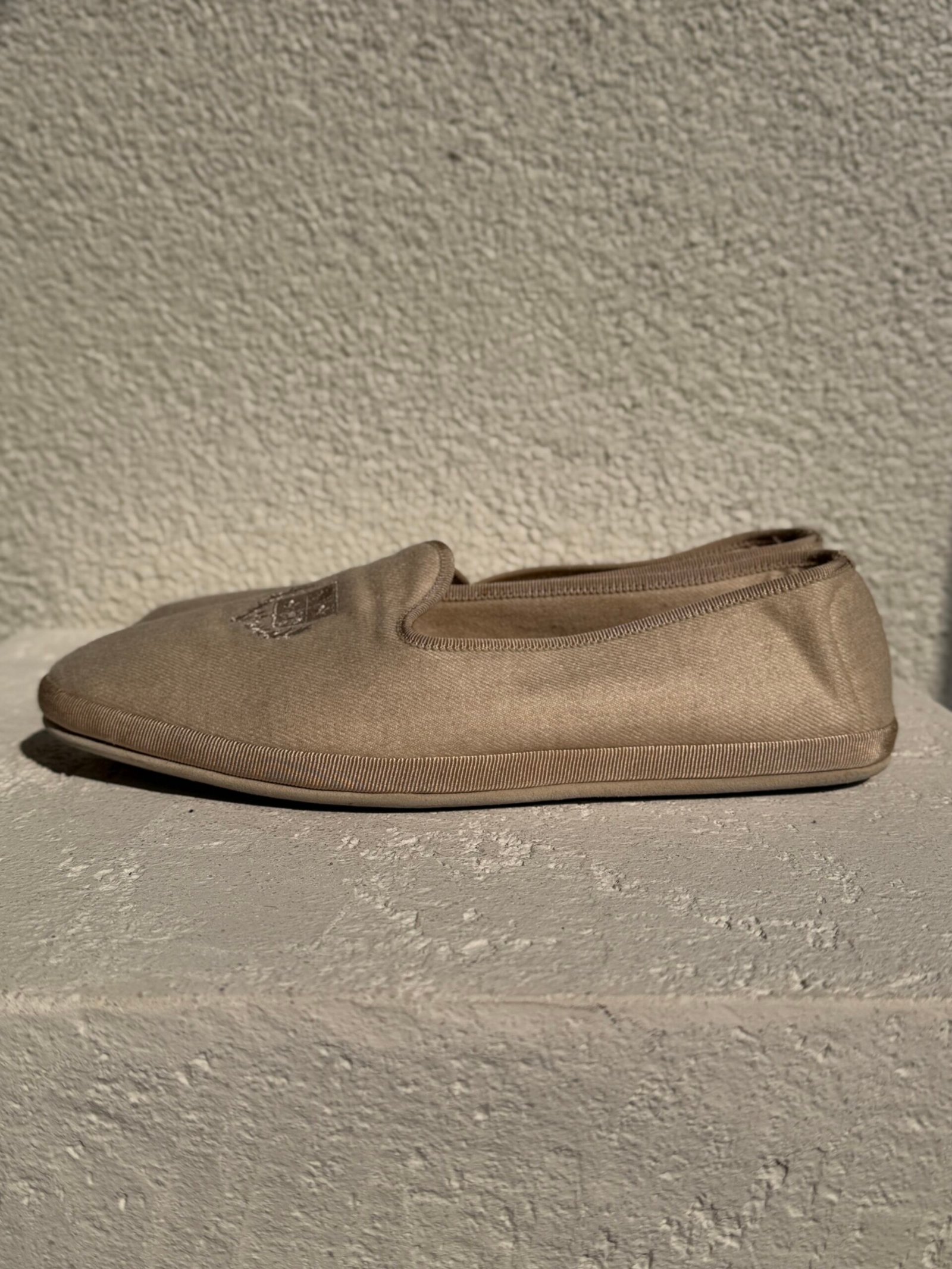 Loro Piana Venice Emboidered Cashmere Blend Flannel Slippers, Size 39, Ecru color