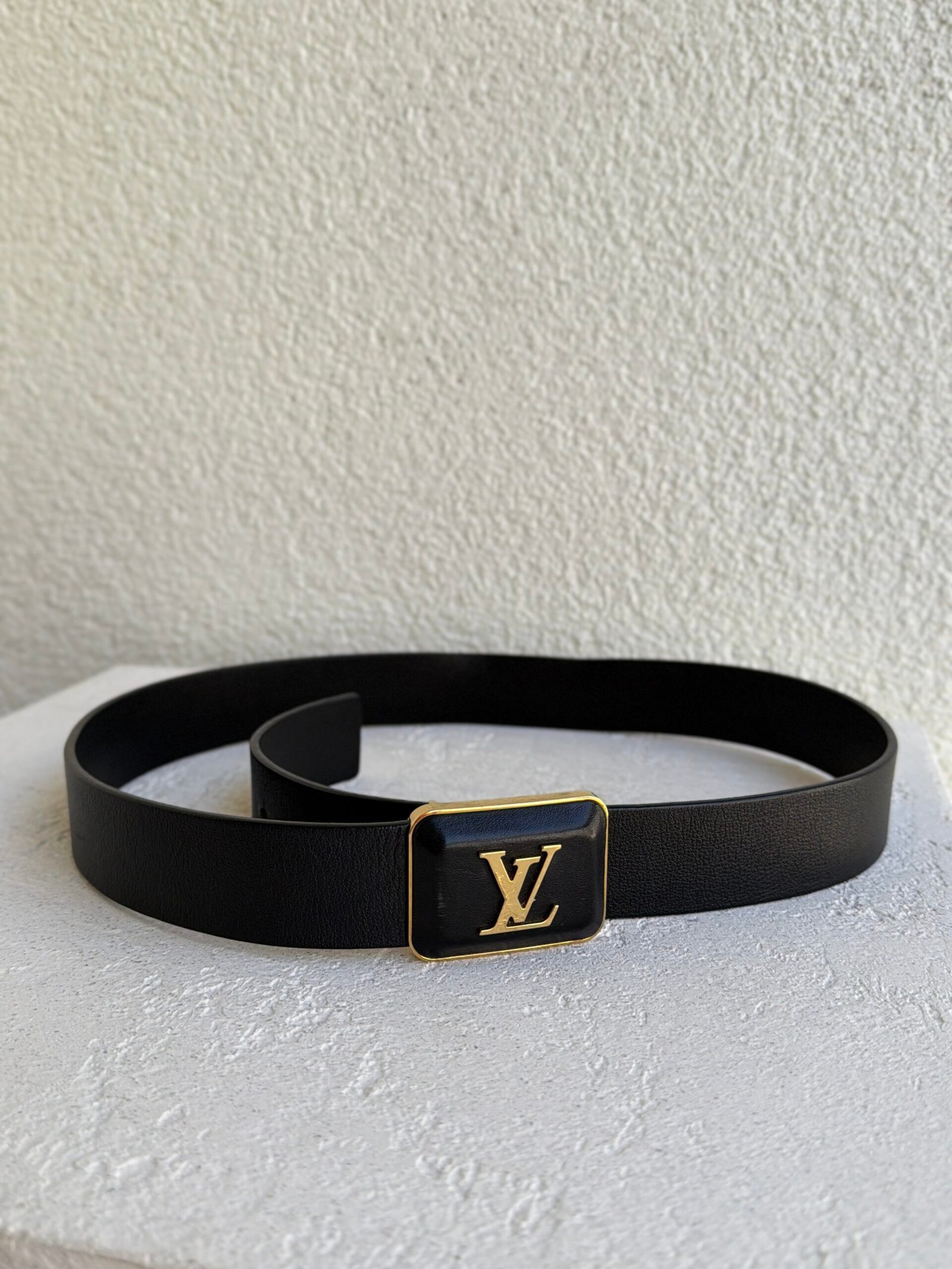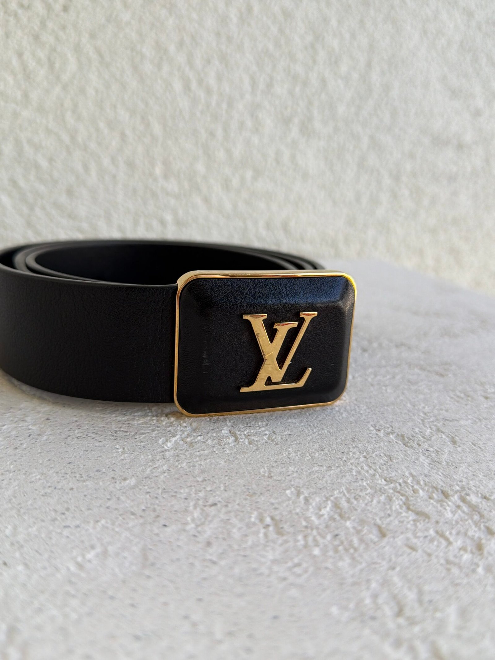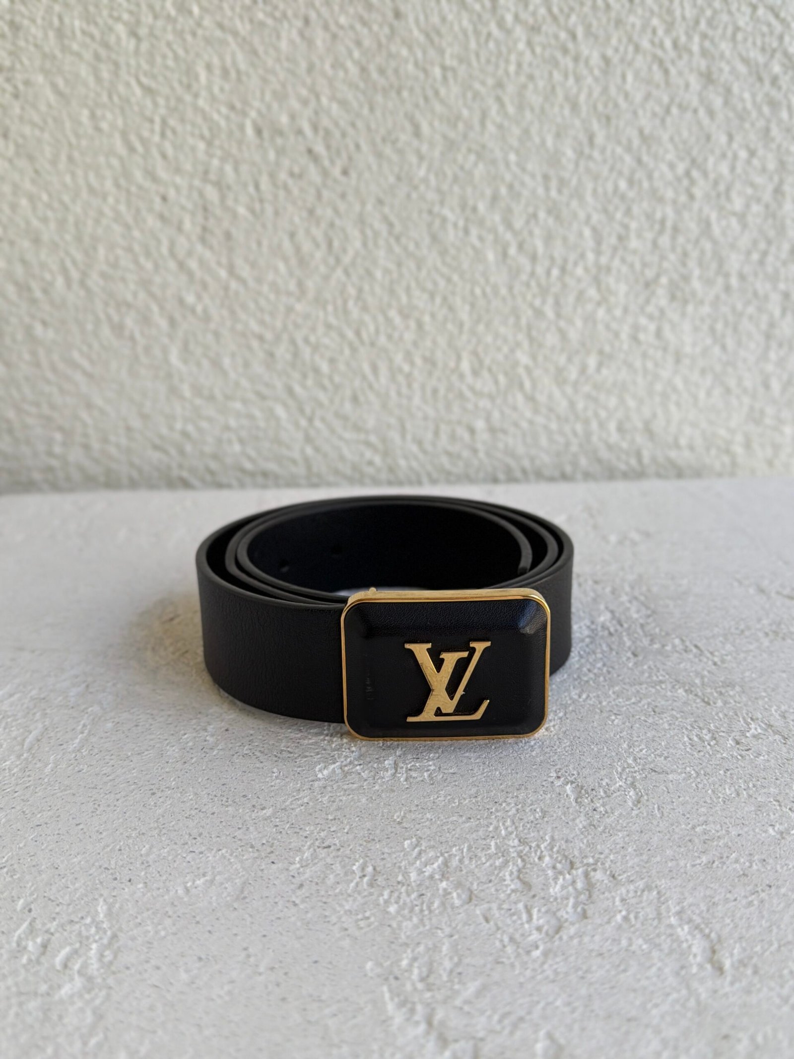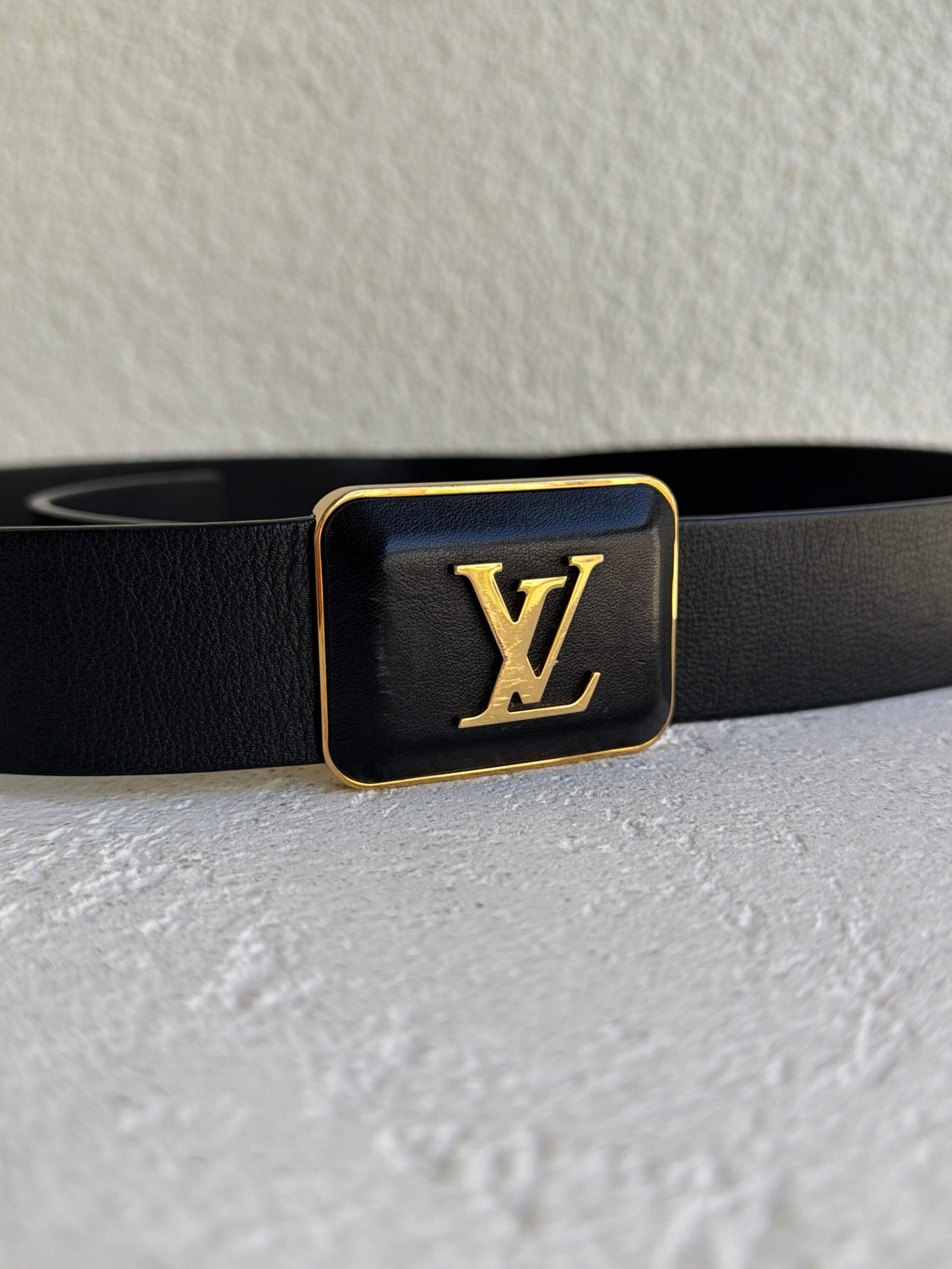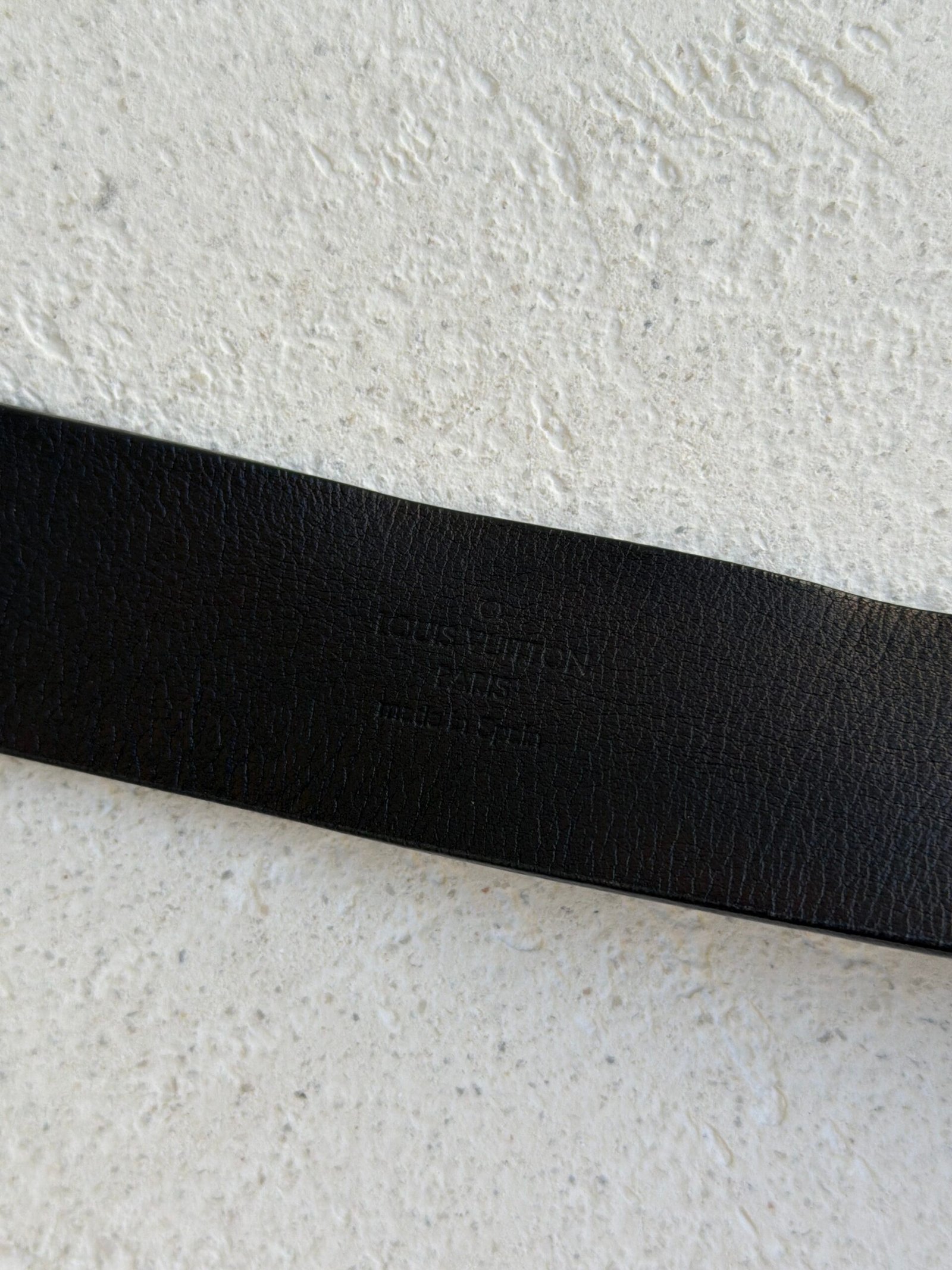 Louis Vuitton LV Logo Leather Belt, Size 85, 100% Leather, Black color, Minor starches on the leather