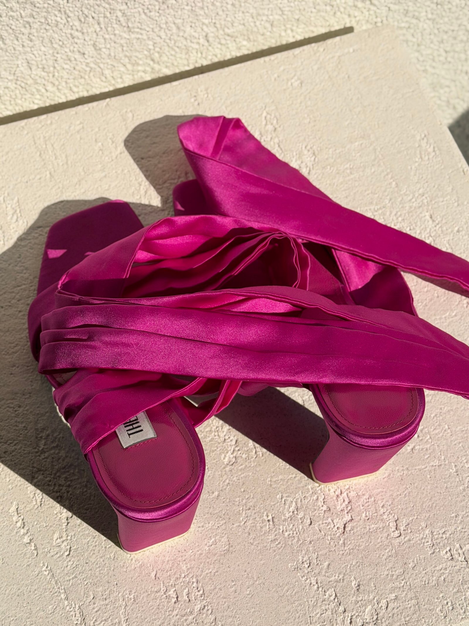 The Attico Fuchsia Satin Wrap High Heel Sandals