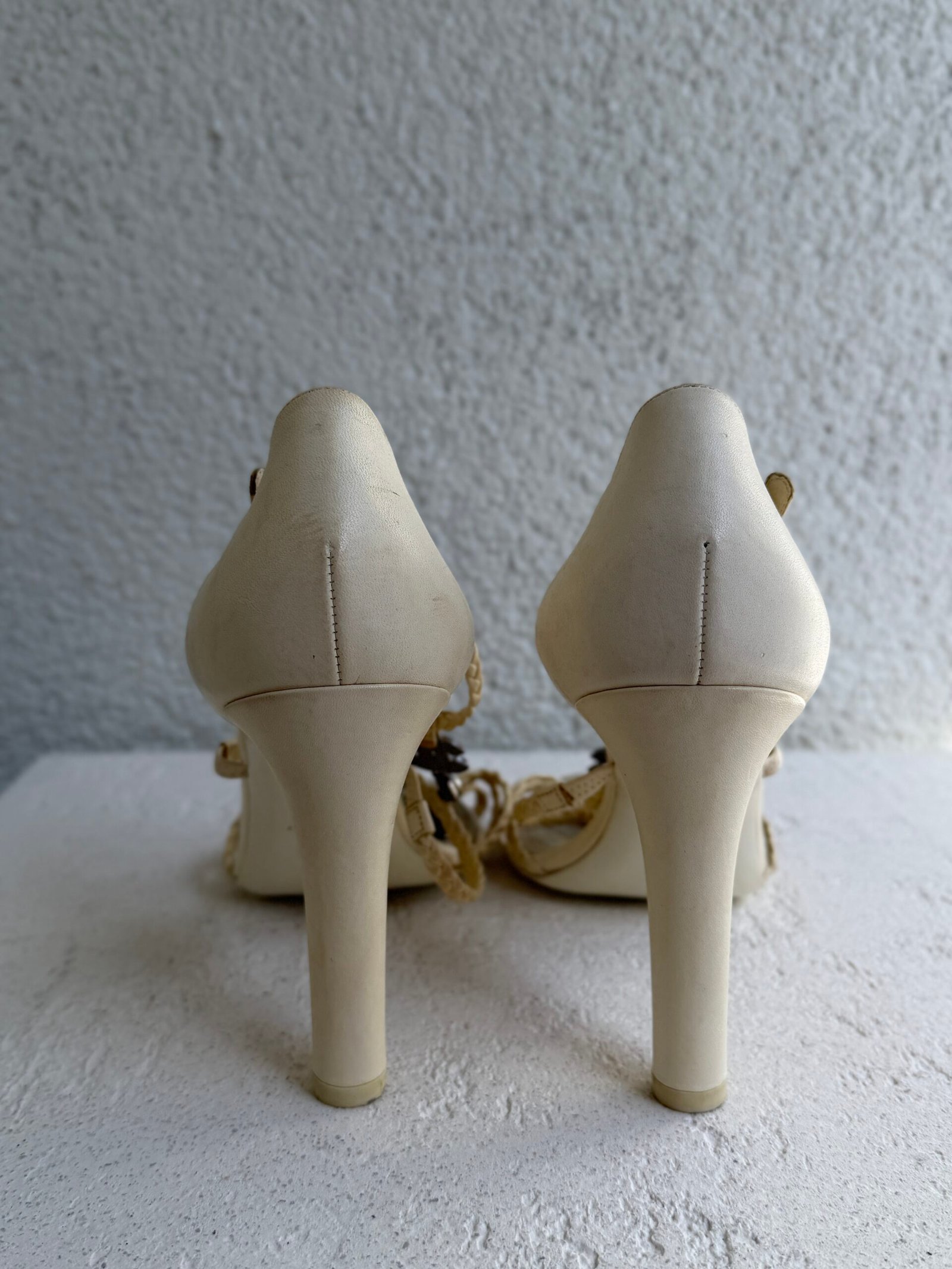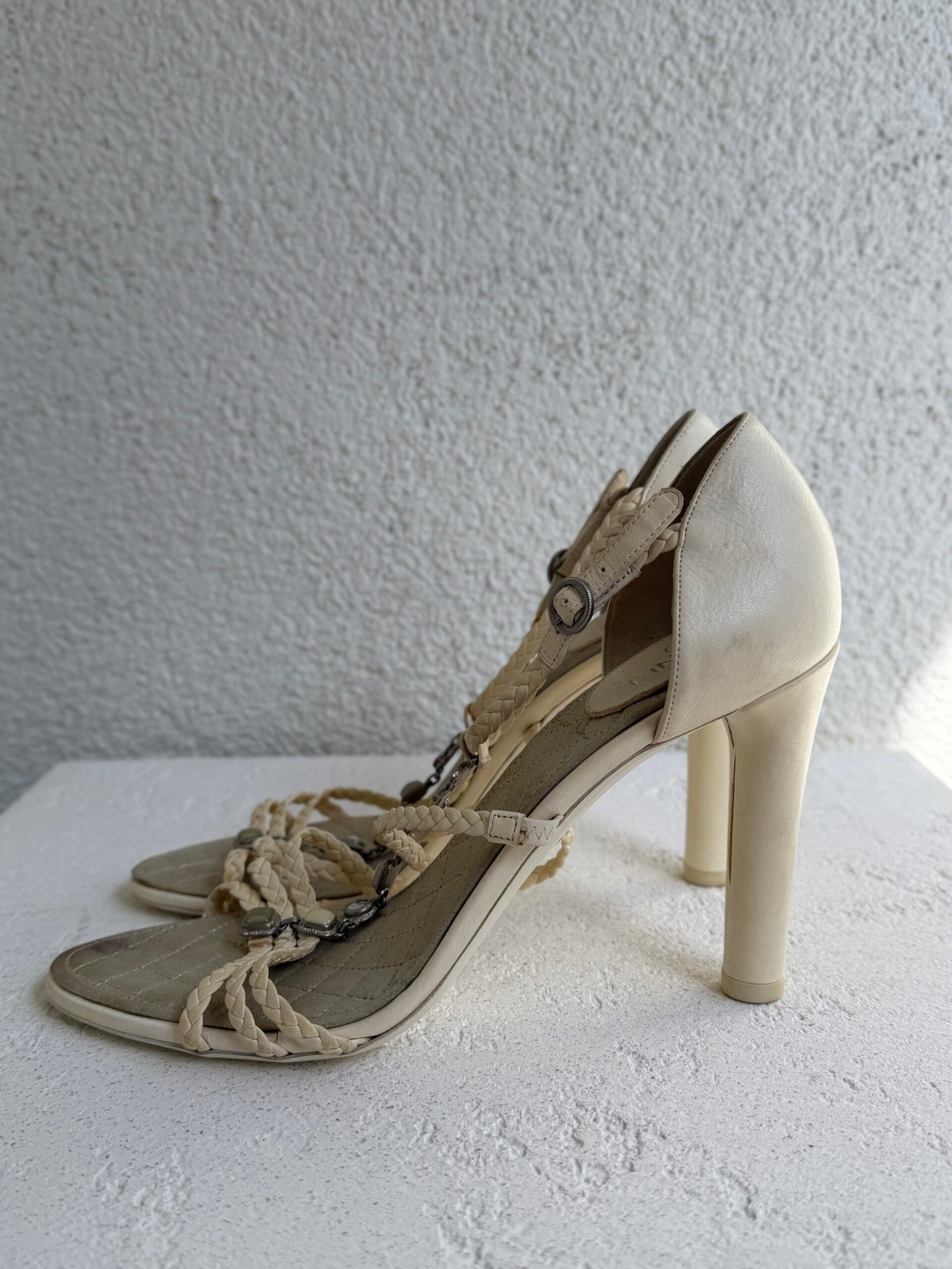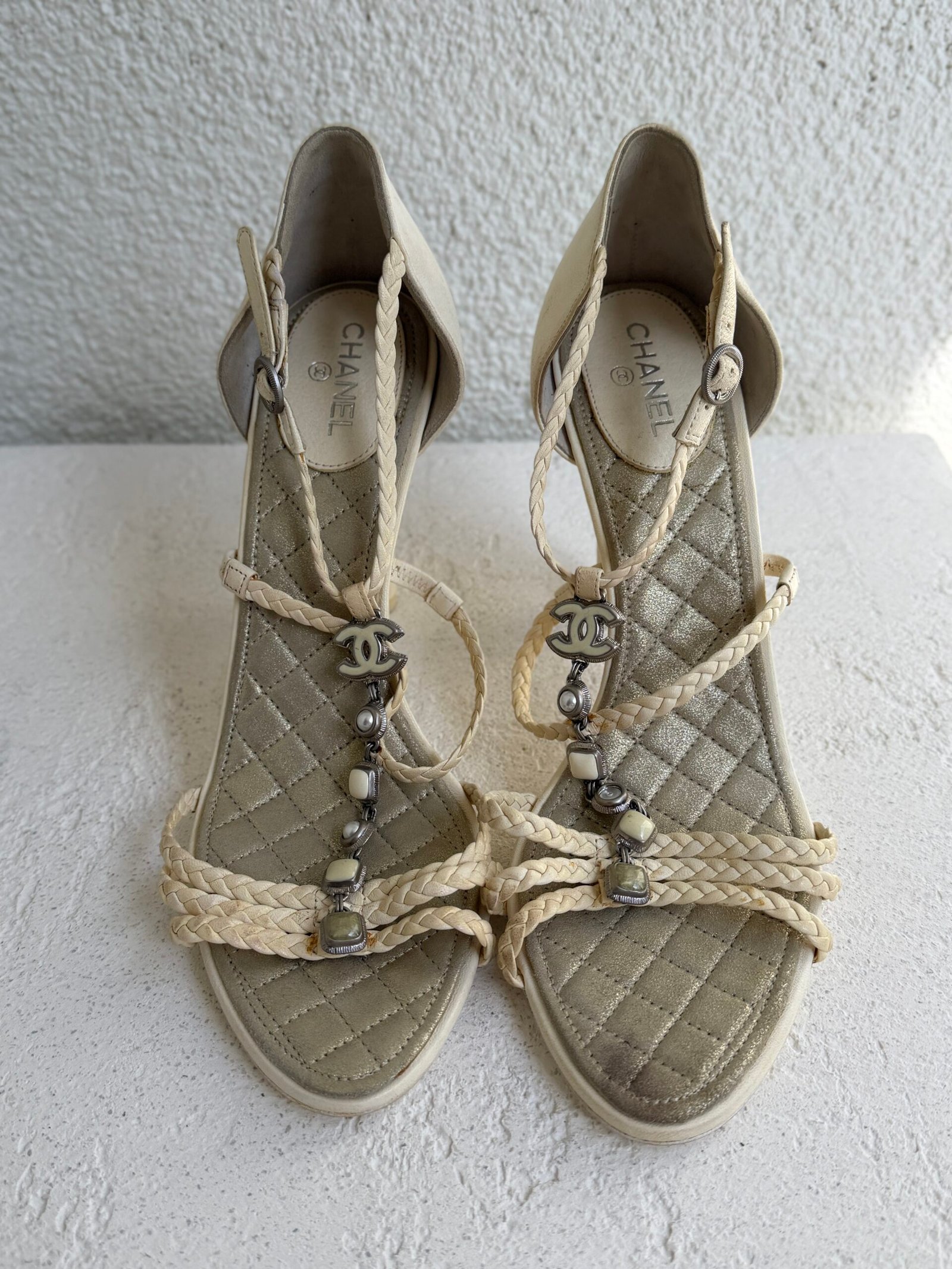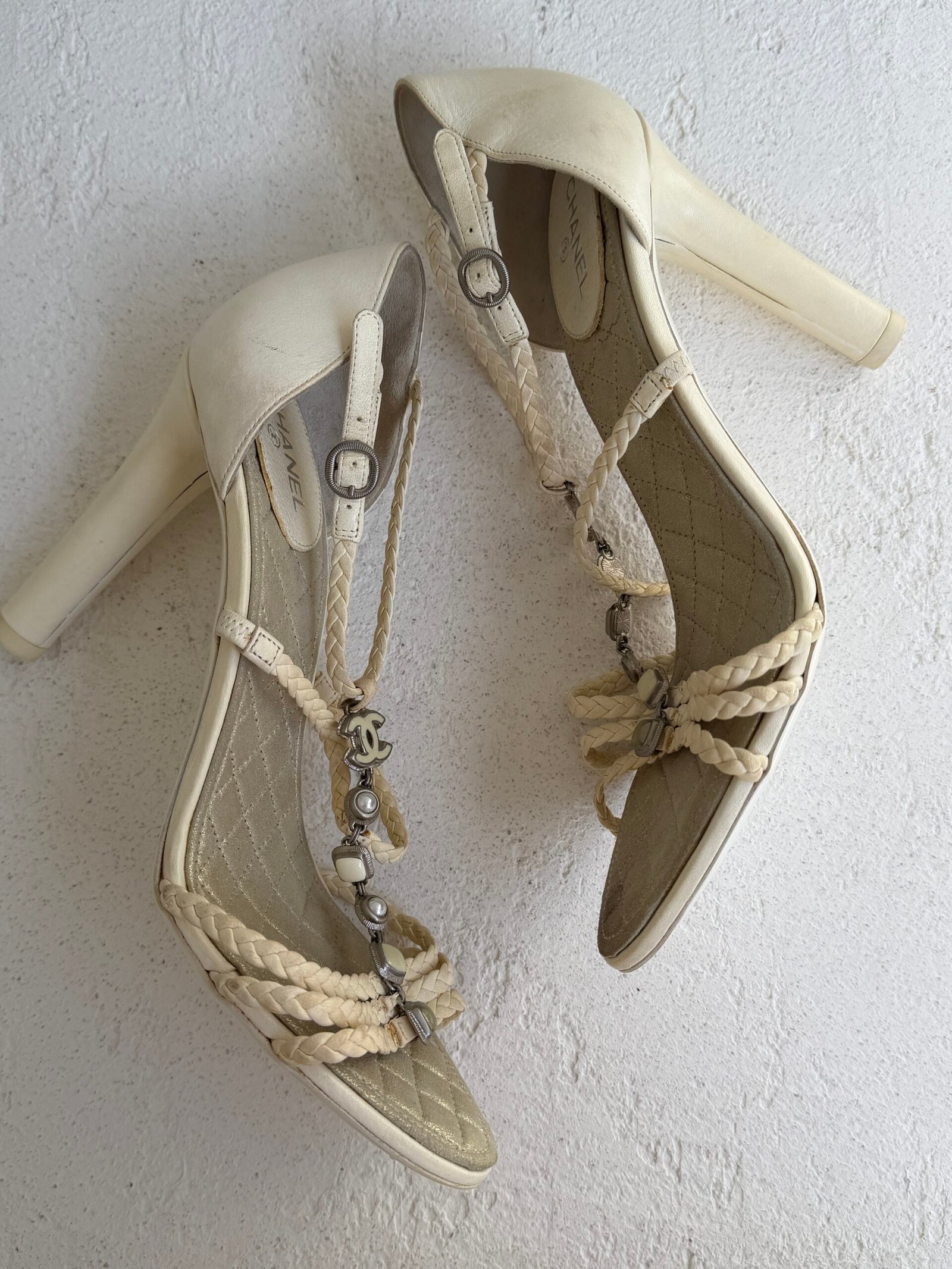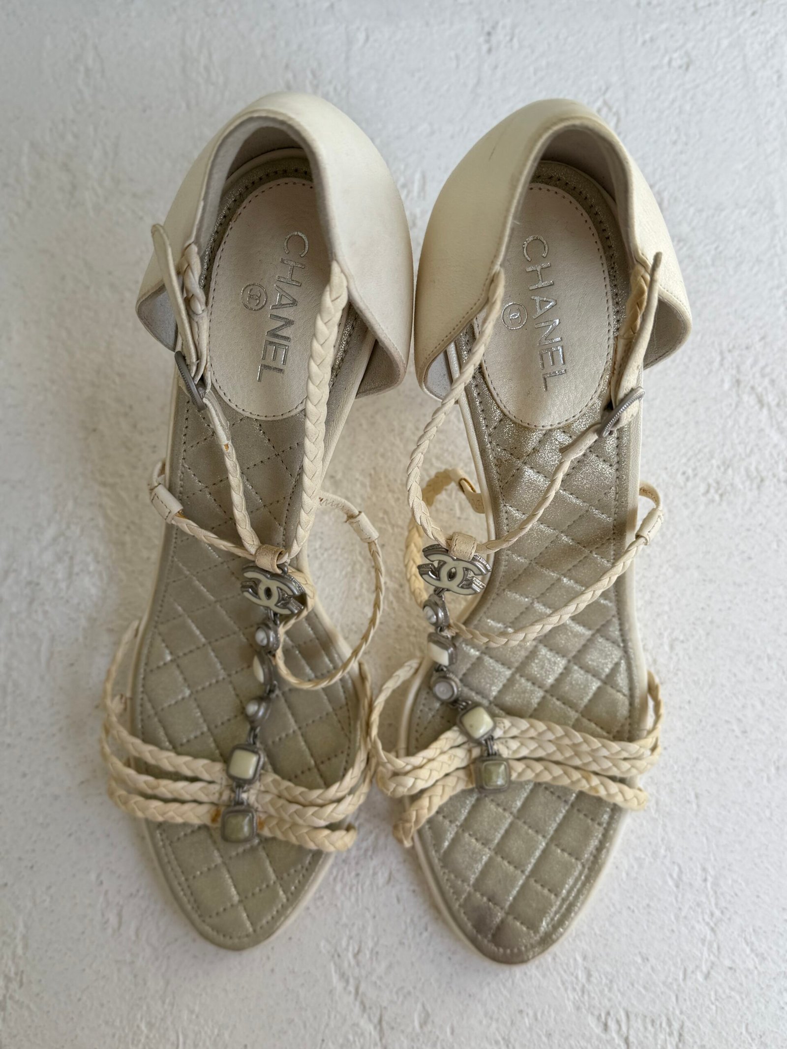 Chanel Ecru CC Logo Sandals, Size 39, Ecru color