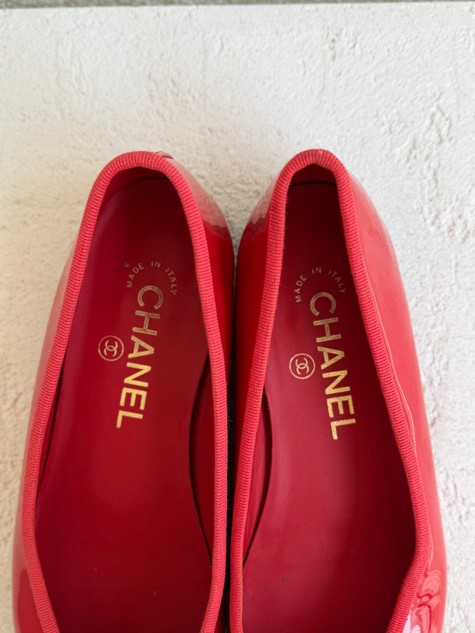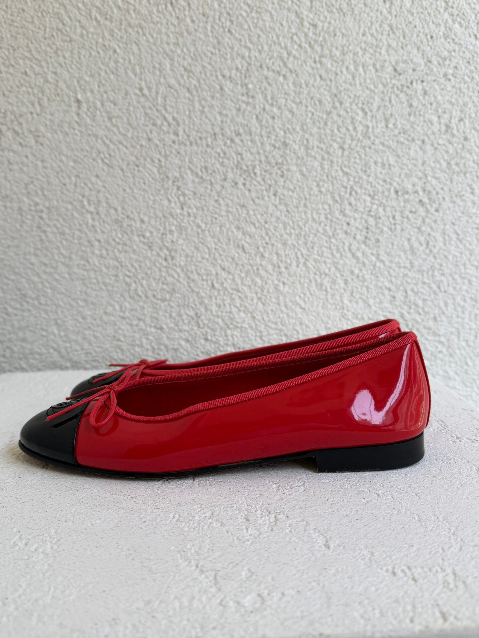 Chanel Red Patent Leather CC Toe Ballet Flats, Size 37, Red color