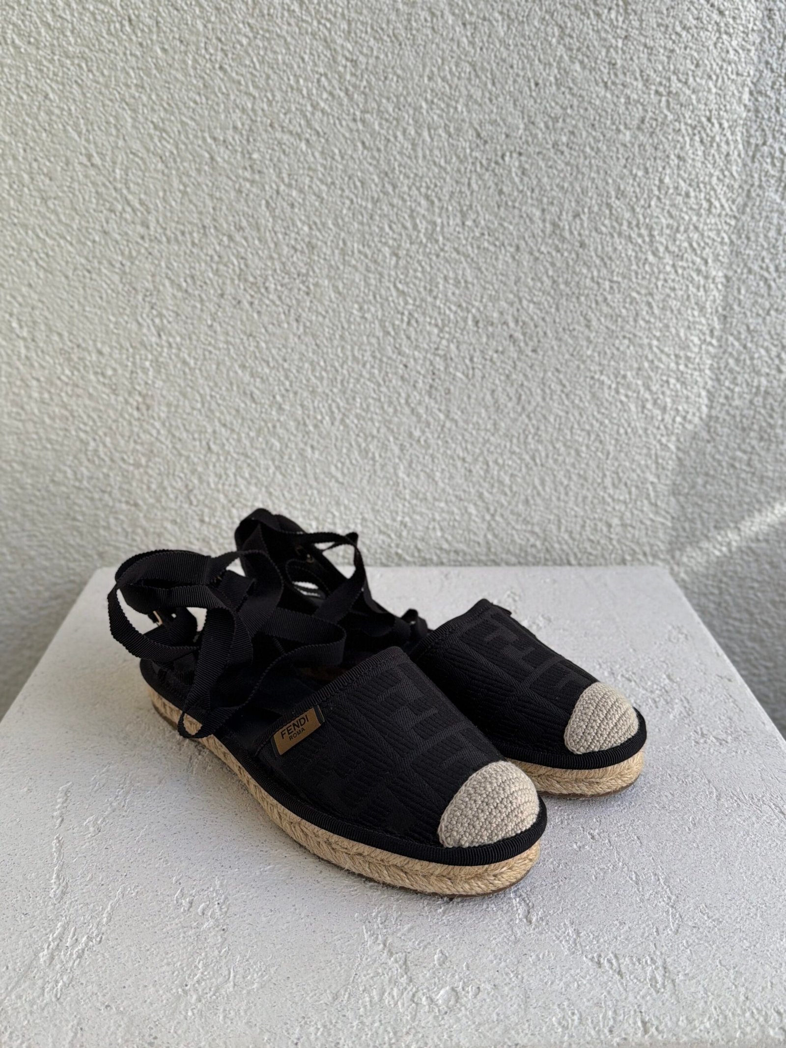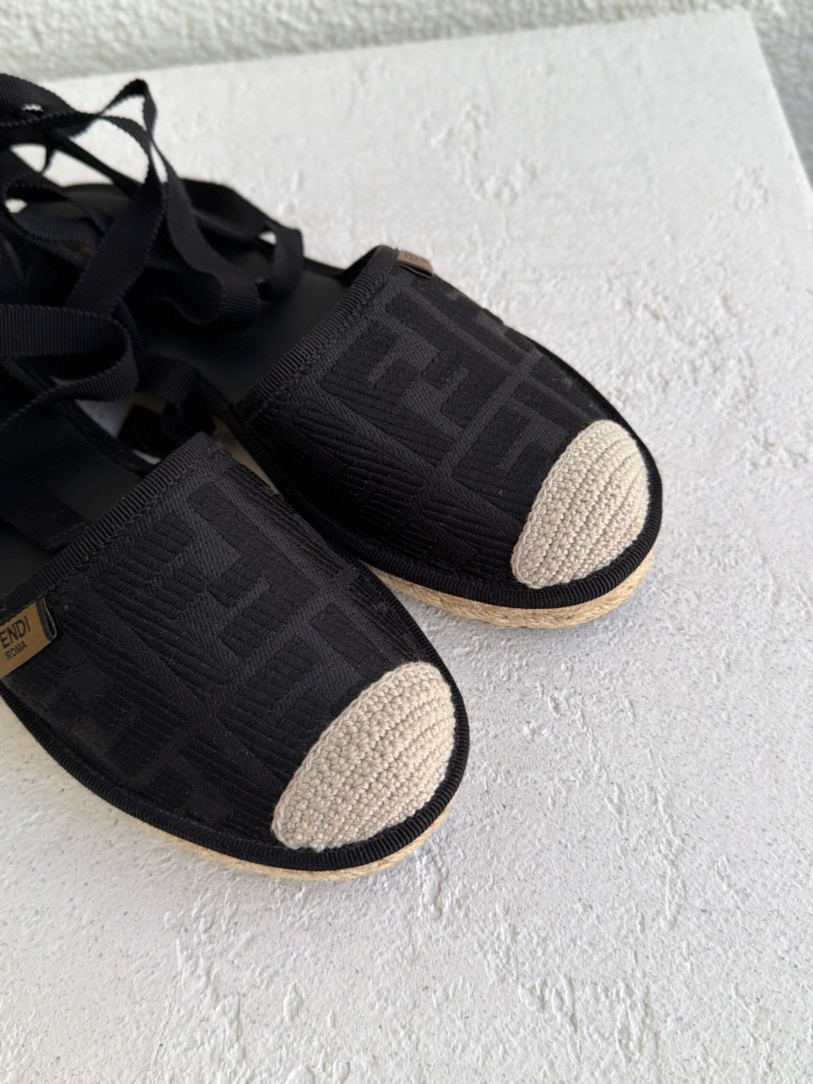 Fendi FF Logo Cloth Espadrilles, Size 36, Black color