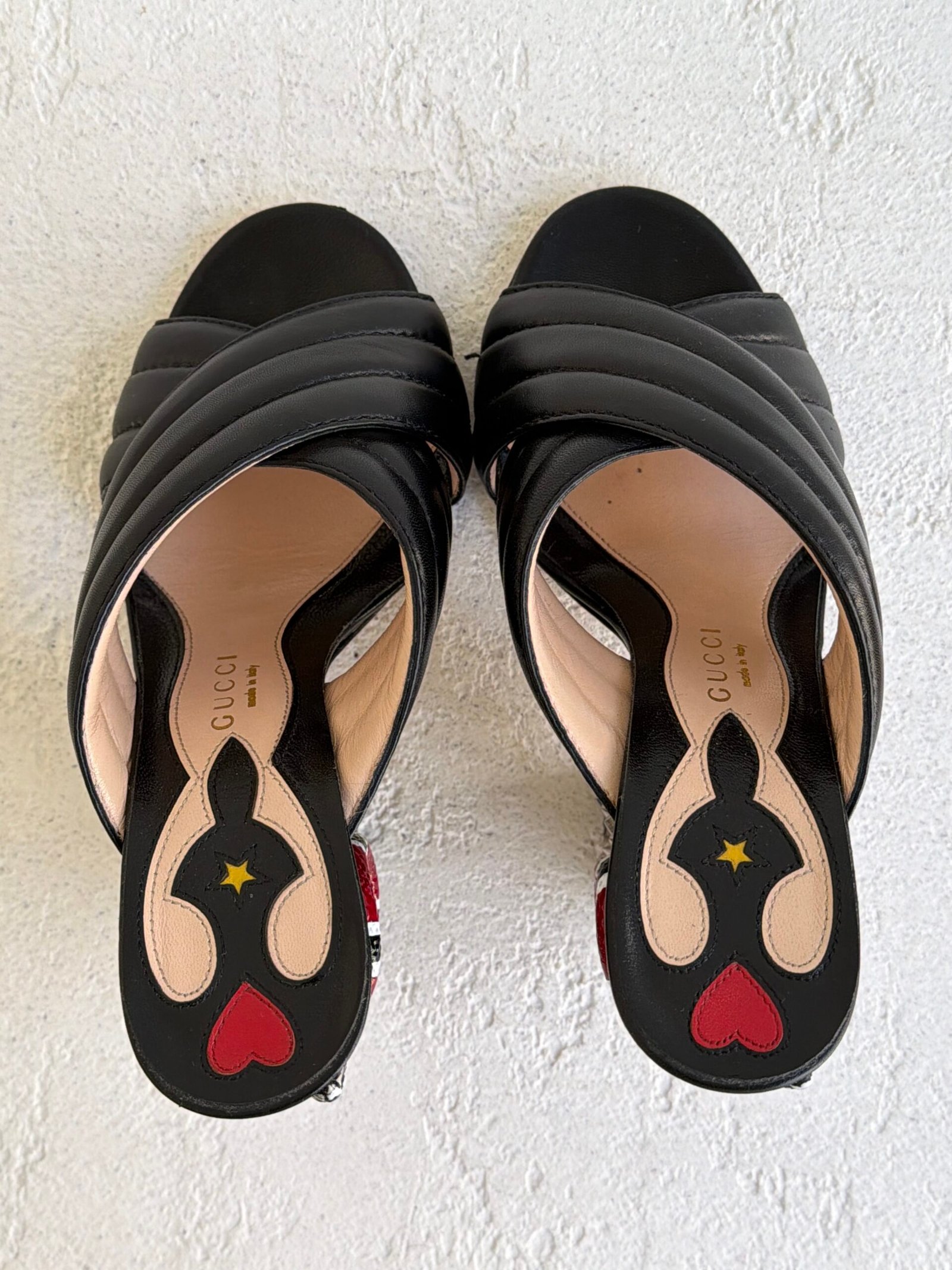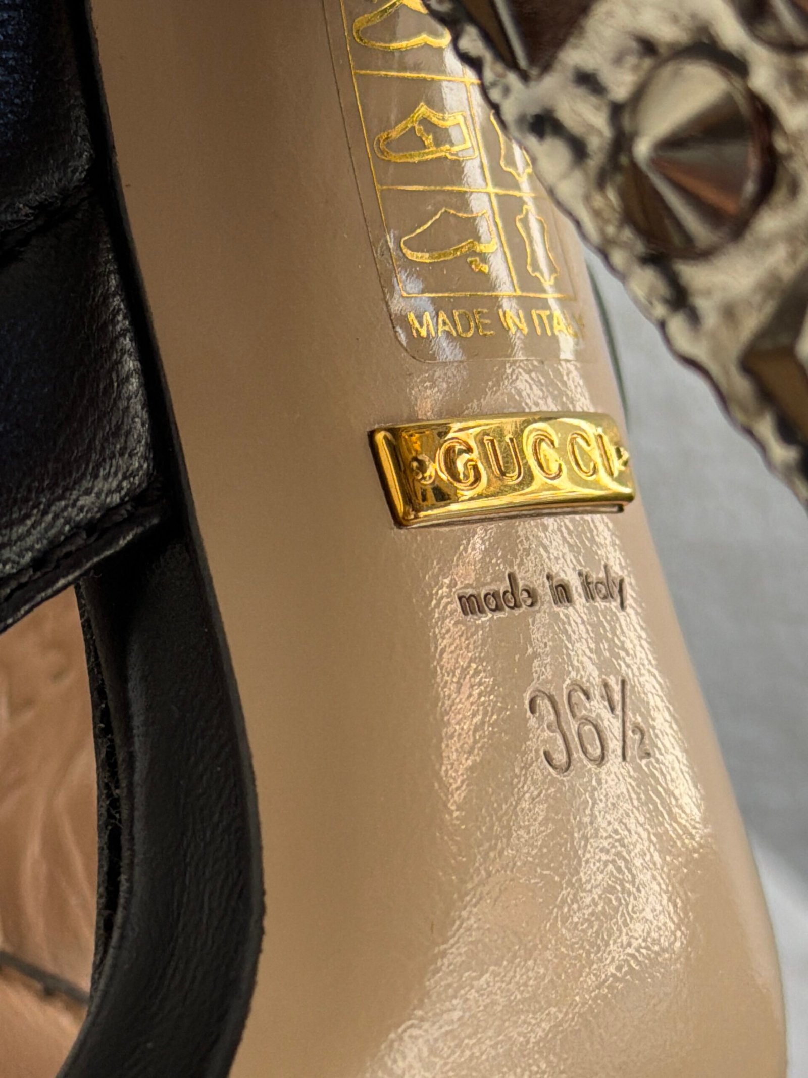 Gucci Black Leather Webby Snake Heel Sandals, Size 36.5, Multicolor