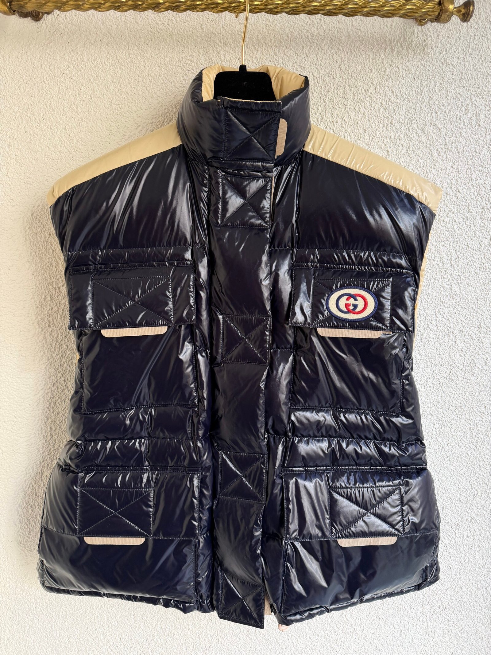 Gucci reversible puffer vest, size IT 38, chest width 44 cm, length 60 cm. 100% Polyester.