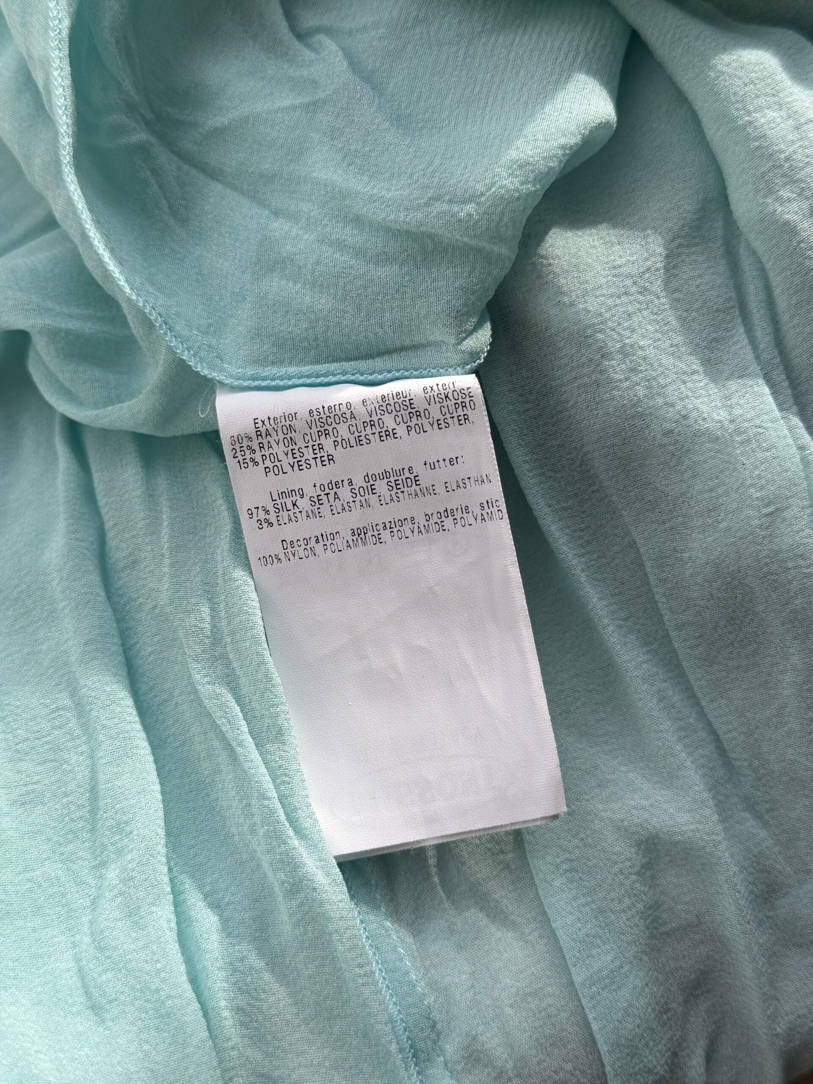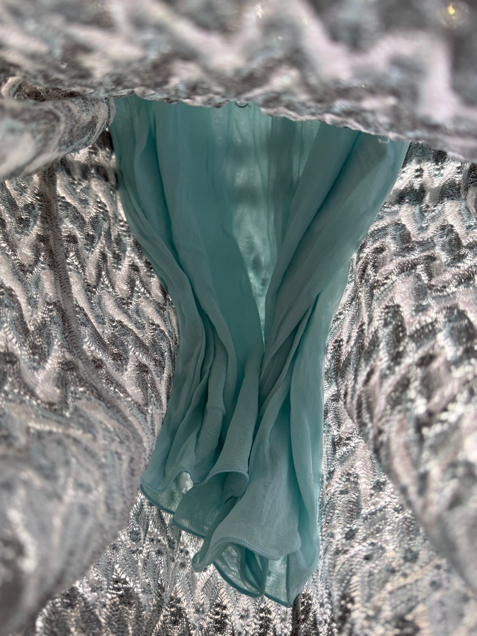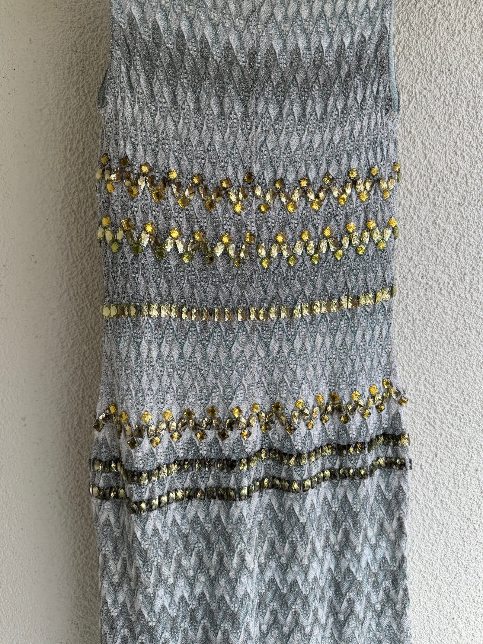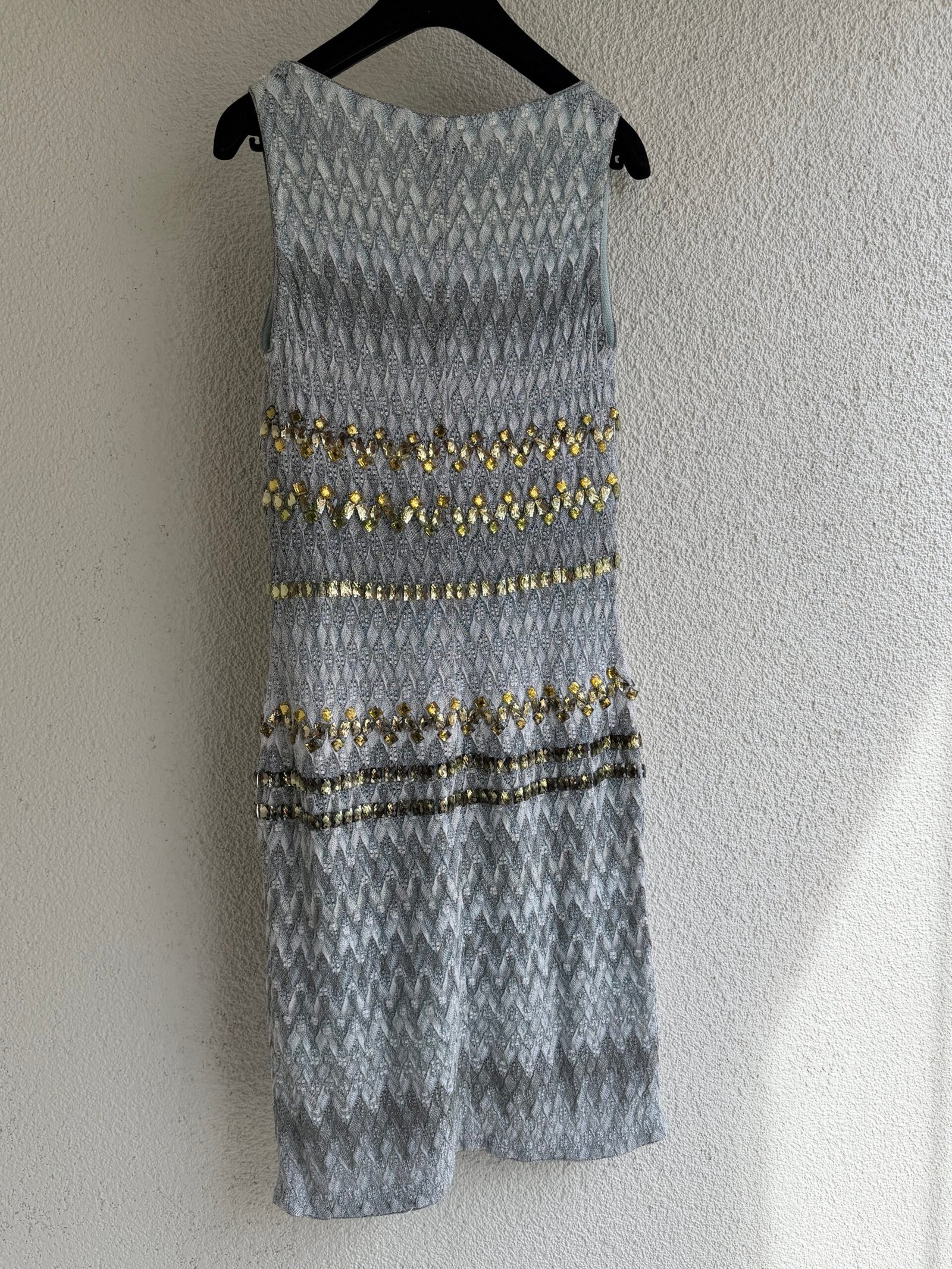 Missoni green sequined mini dress, size IT 40, chest width 42 cm, length 100 cm. 97% Silk, 3% Elastane.