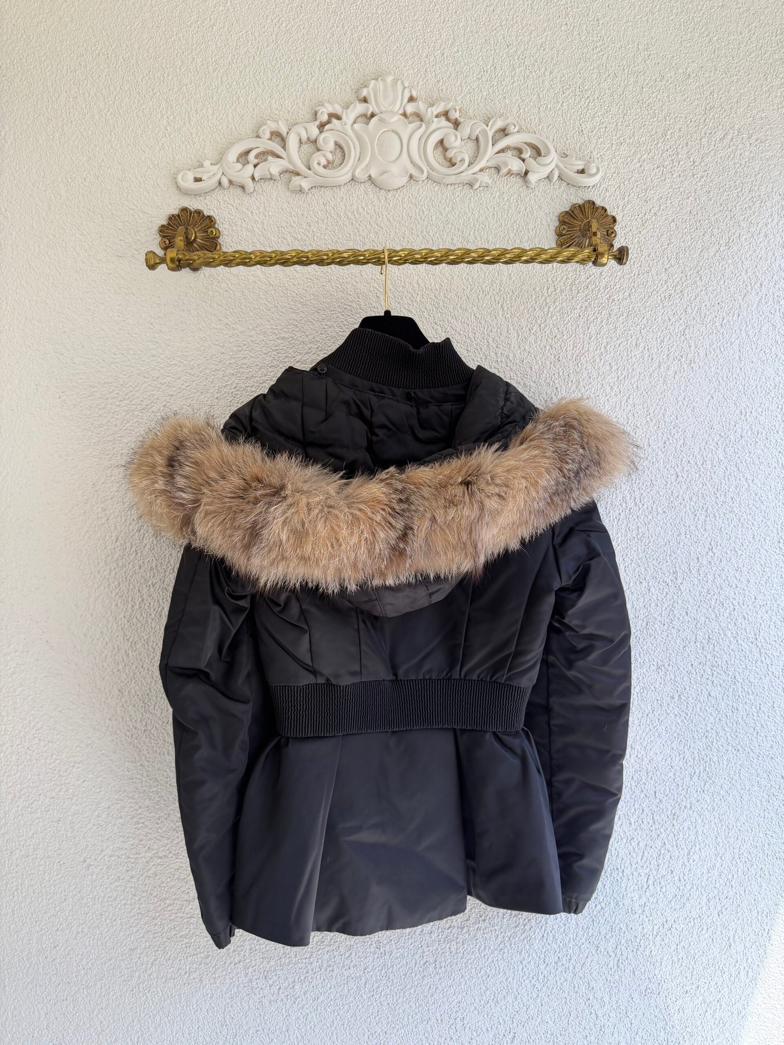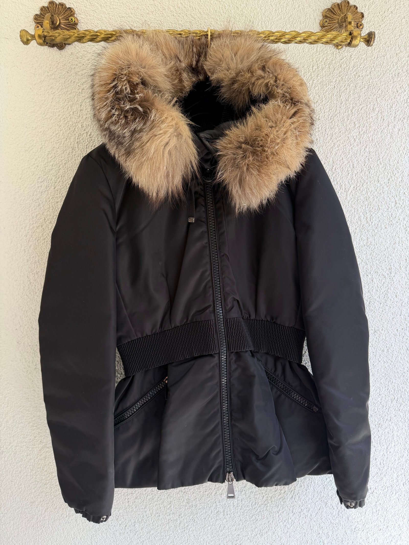 Moncler Saumur Giubotto Fur Coat, Size 2, Fox Fur, Chest width 48 cm, length 62 cm, sleeve length 62 cm