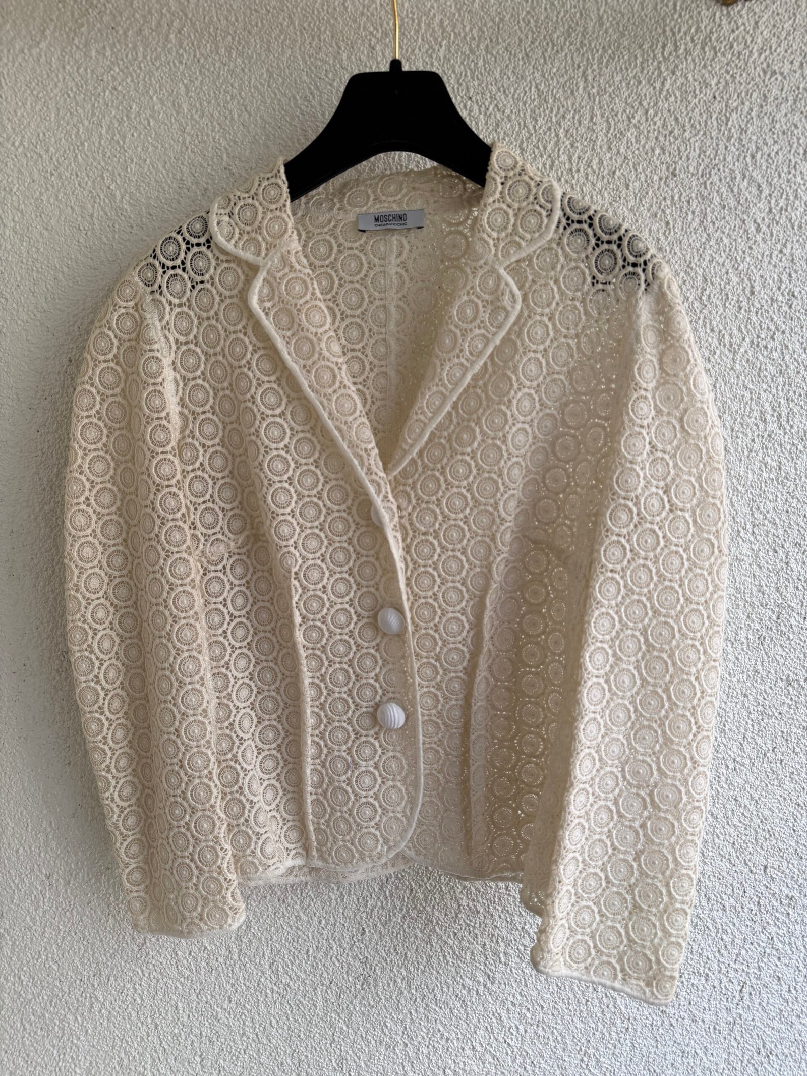 Moschino Lacy Ecru Jacket, Size IT 42, Material 100% Cotton